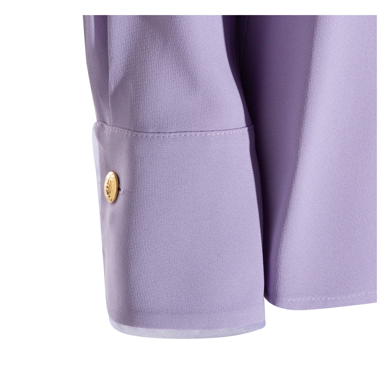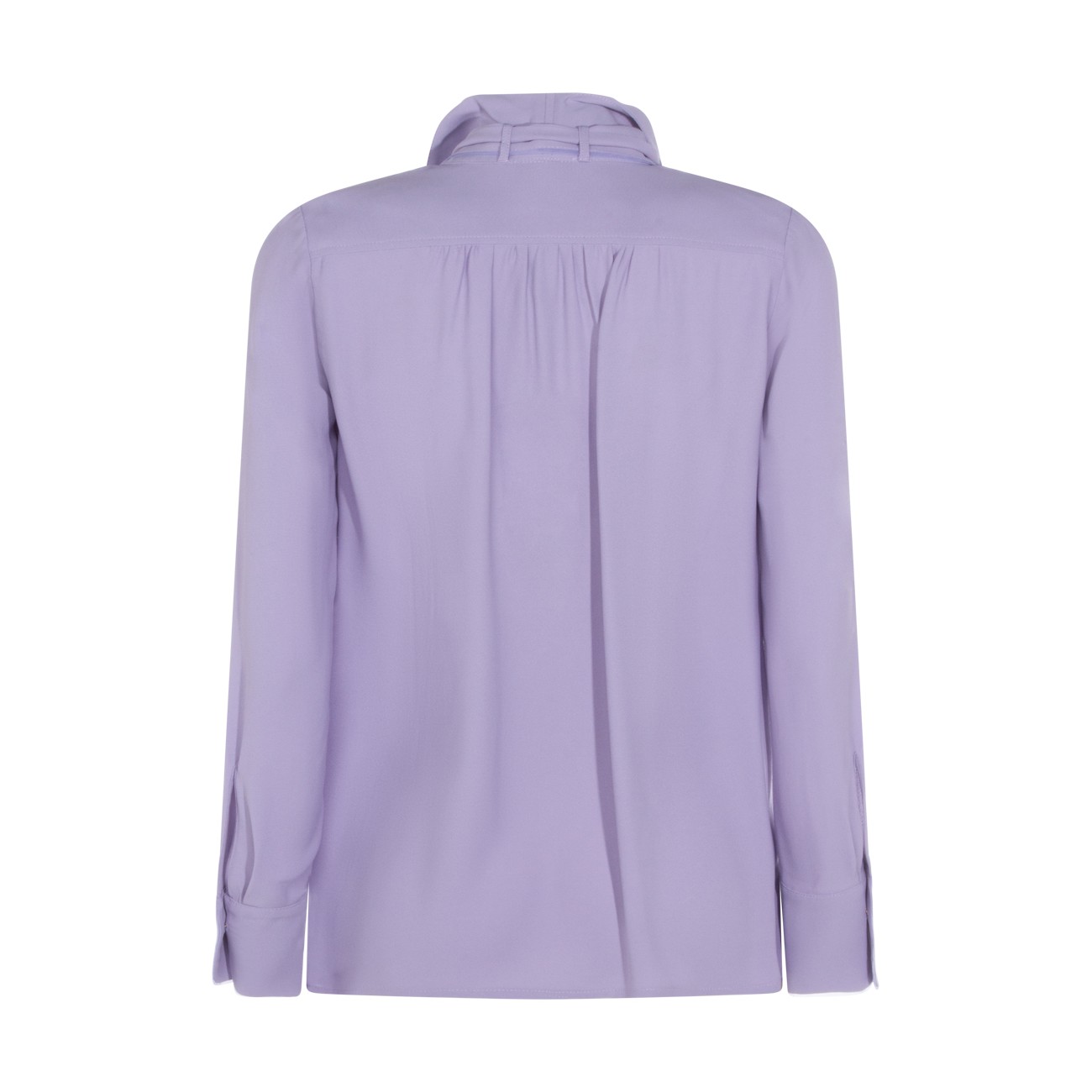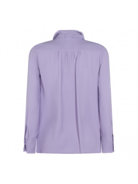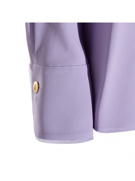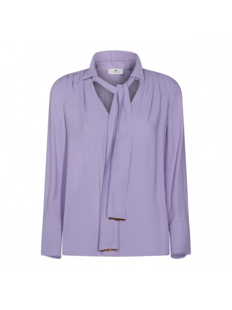 Lilac viscose shirt from Elisabetta Franchi featuring shirt collar, V-neck, sash framing the neck, gold metal plaques, long sleeves and regular vestibility.