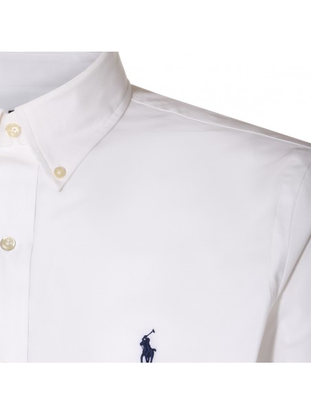 White cotton shirt from Polo Ralph Lauren featuring long sleeves, shirt collar, round hem, embroidered logo and regular vestibility.