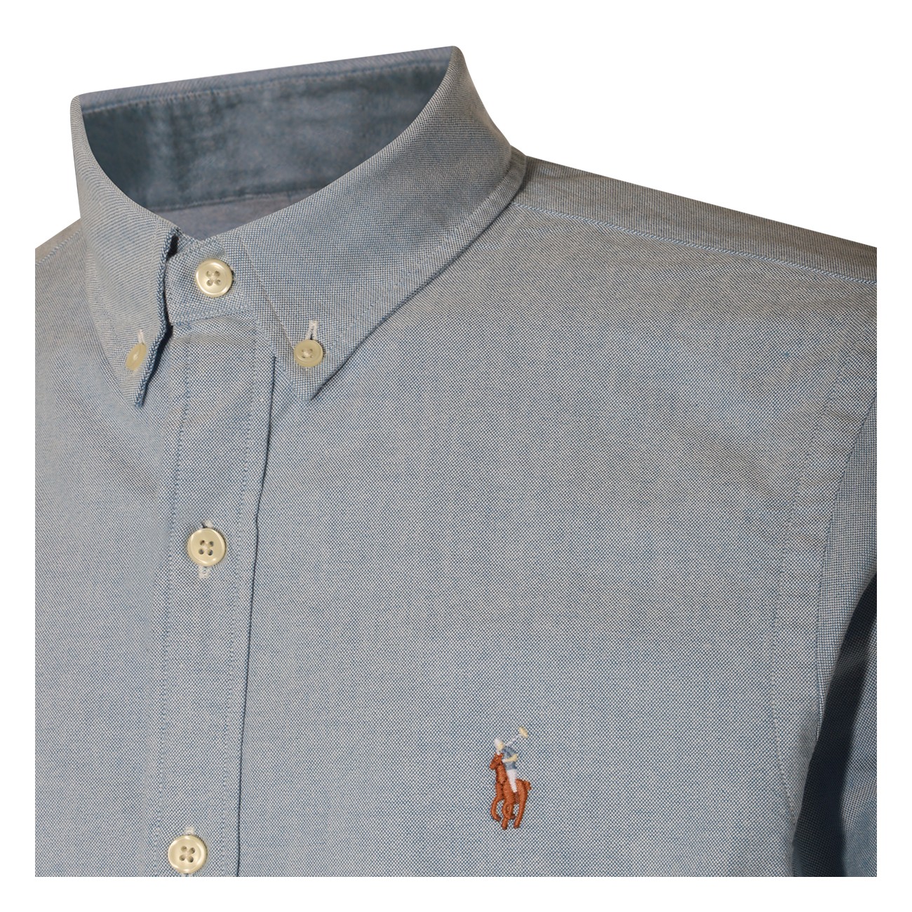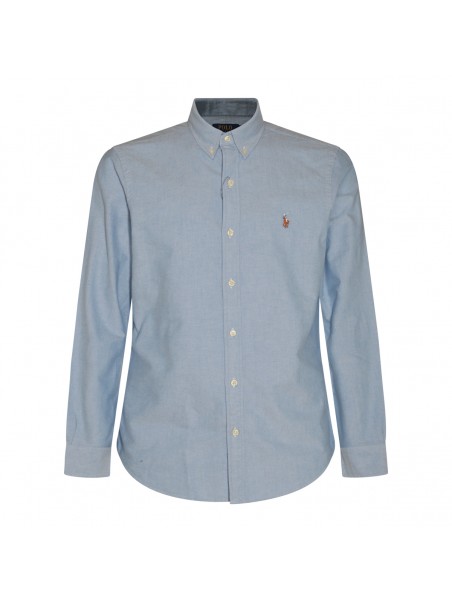 Light blue cotton classic Oxford shirt from Polo Ralph Lauren featuring a button-down collar, long sleeves, button cuffs, a front button fastening, a curved hem and an embroidered designer logo to the chest.