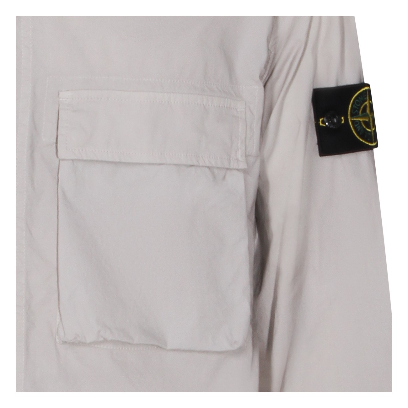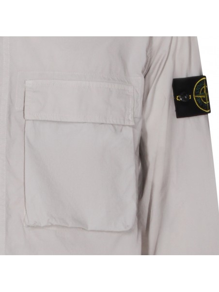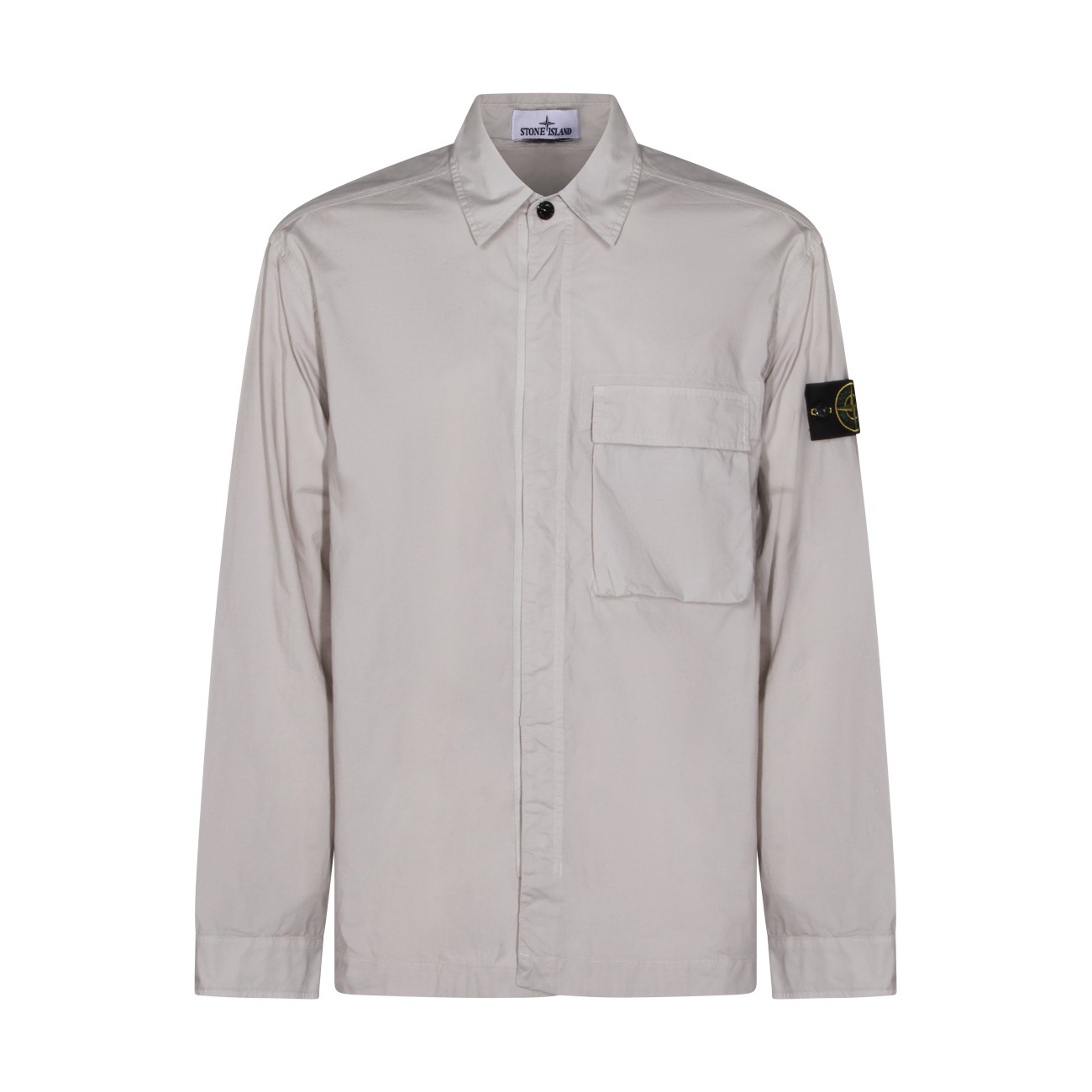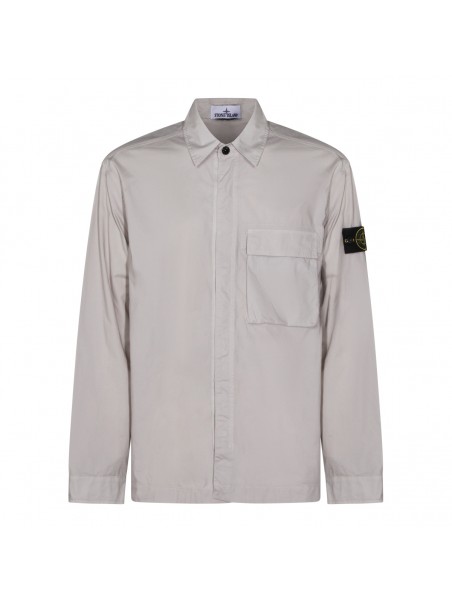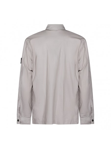 Grey cotton shirt from Stone Island featuring long sleeves, logo patch, frontal zip fastening, shirt collar and regular vestibility.