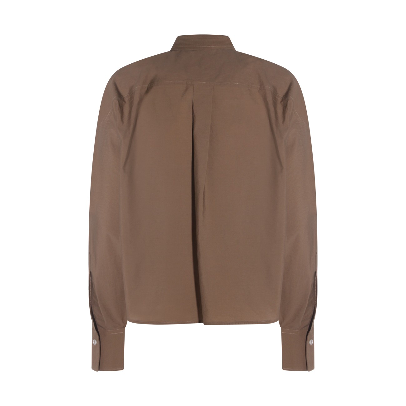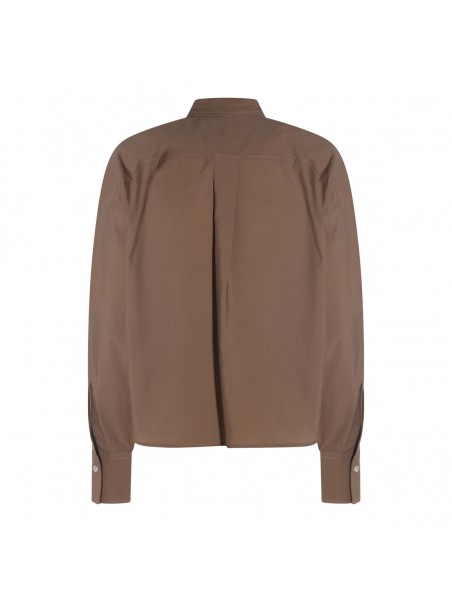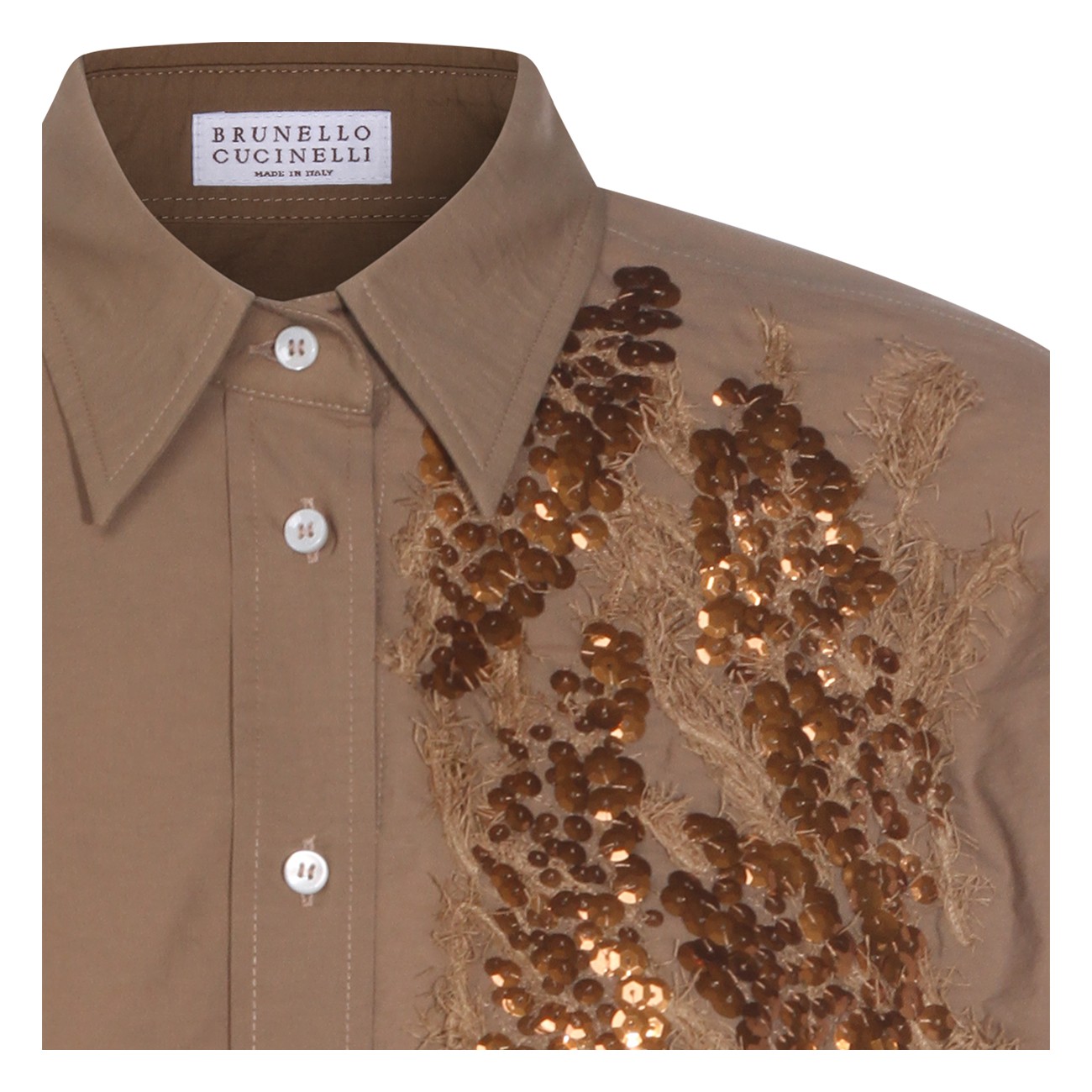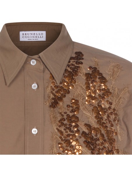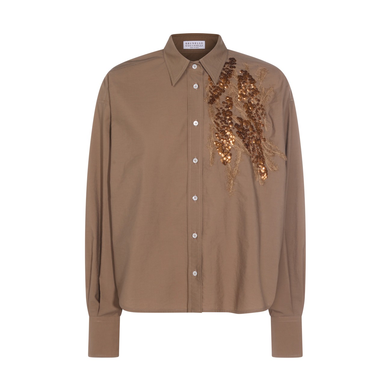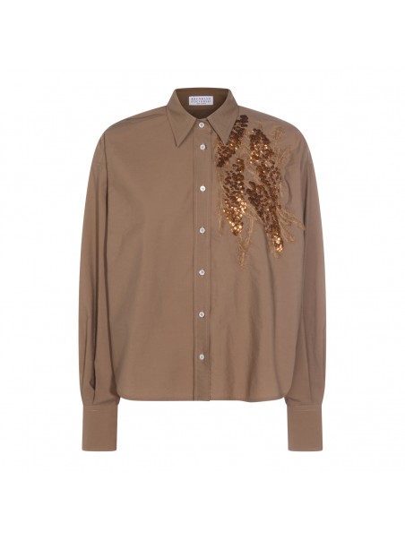 Brown cotton shirt from Brunello Cucinelli featuring long sleeves, frontal fastening with buttons, shirt collat, embroidered detail and regular vestibility.