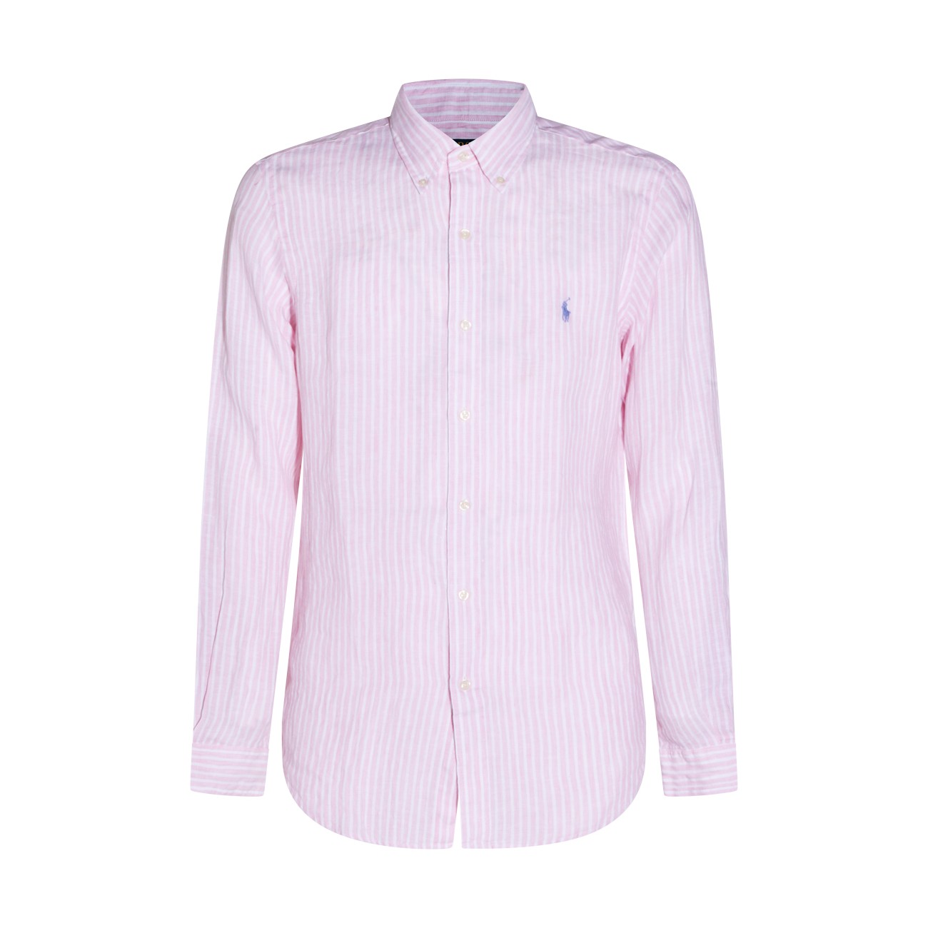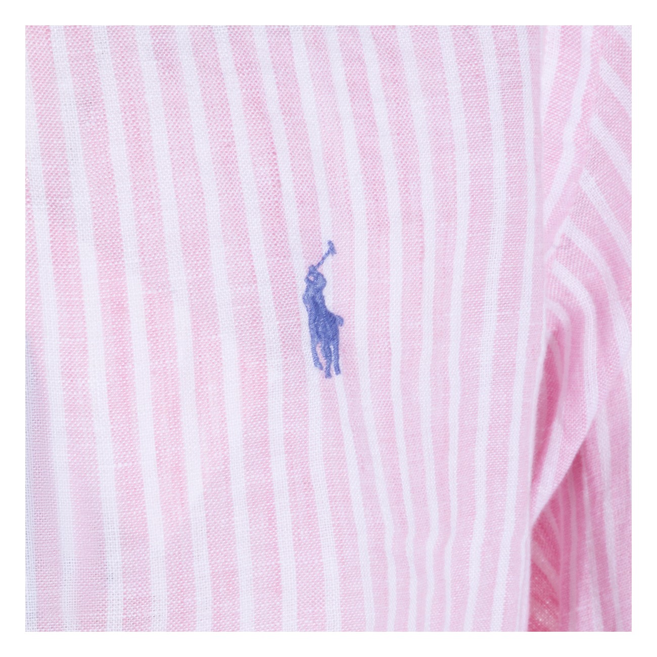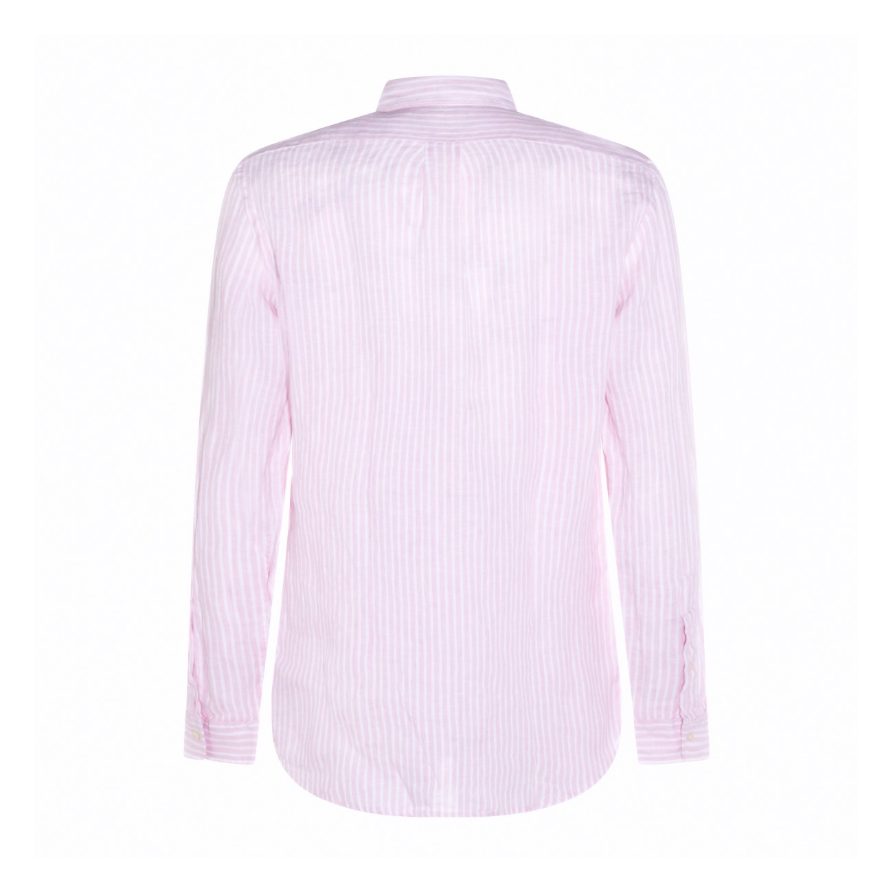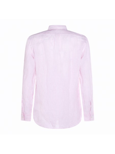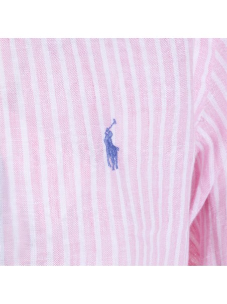 Pink white linen shirt from Polo Ralph Lauren featuring long sleeves, buttons fastening, shirt collar, embroidered logo and regular fit.