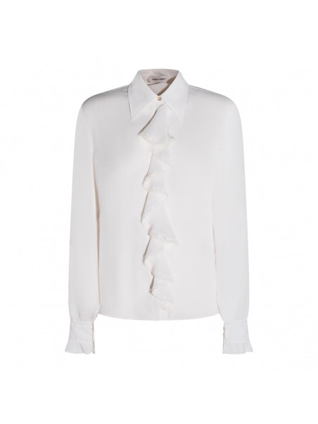 White shirt from Alberta Ferretti featuring long sleeves, shirt collar, frontal rouches and regular vestibility.