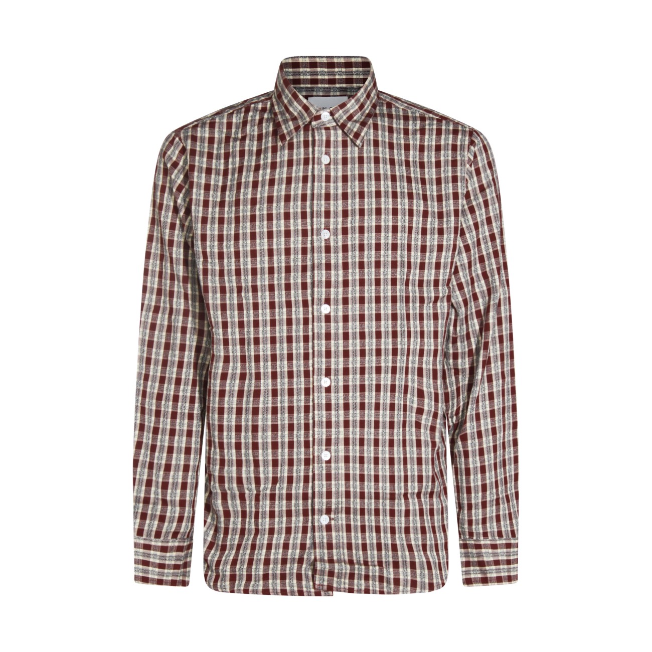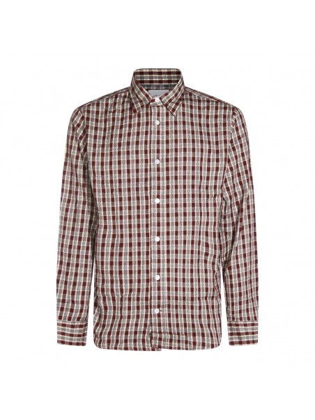 Red cotton shirt from NN.07 featuring long sleeves, shirt collar, buttons fastening and all over check motif.