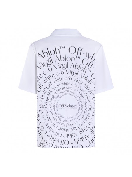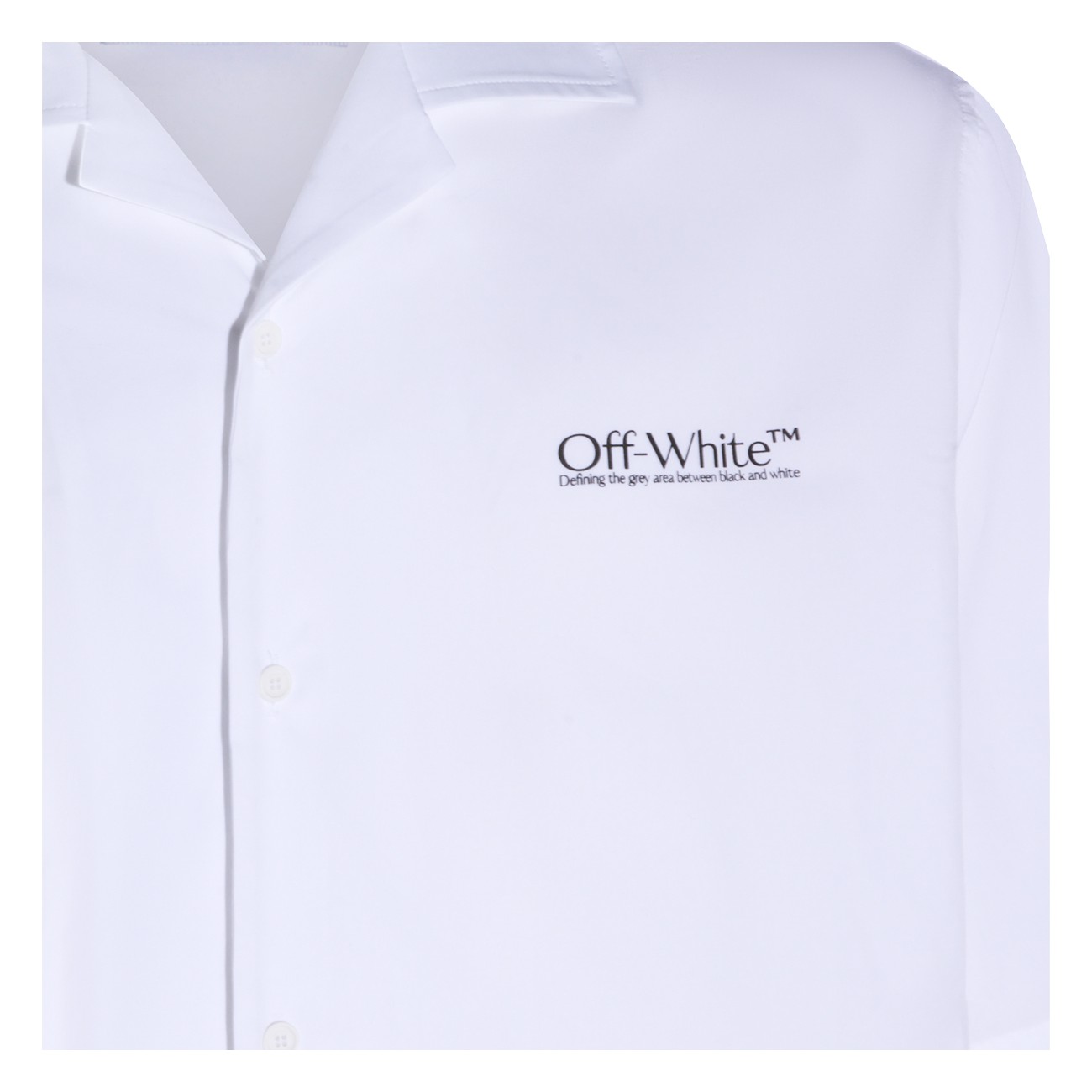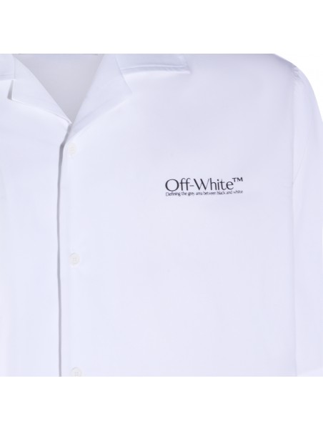 White cotton shirt from Off-White featuring short sleeves, frontal and back logo stamp, shirt collar, buttons fastening and regular fit.