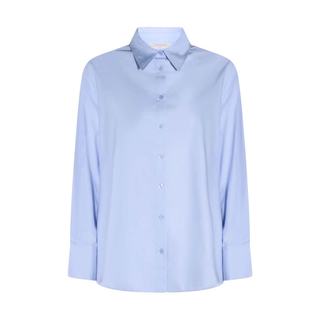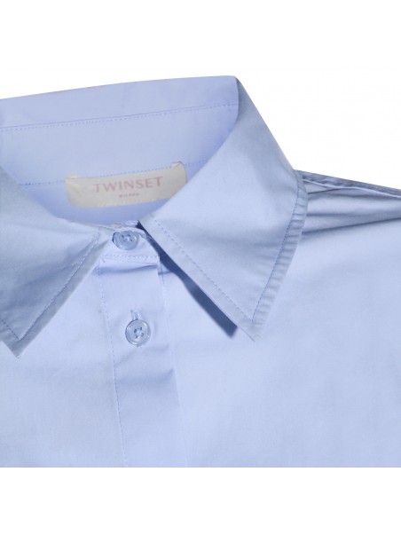 Light blue cotton shirt from Twinset featuring long sleeves, shirt collar and regular vestibility.