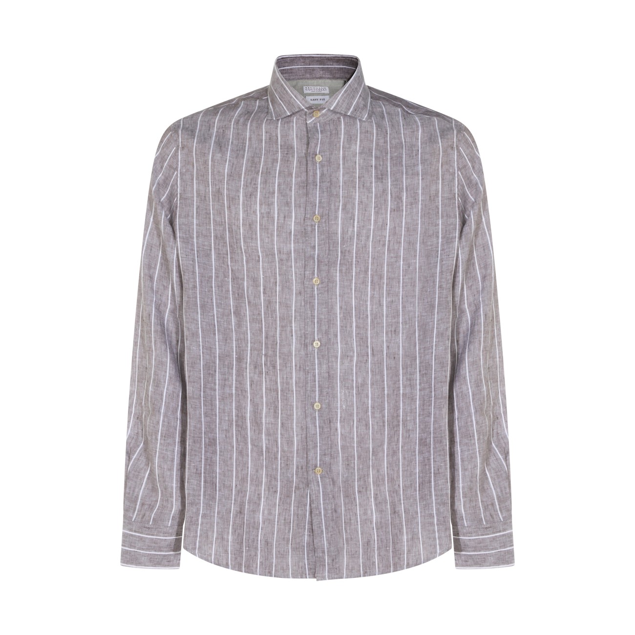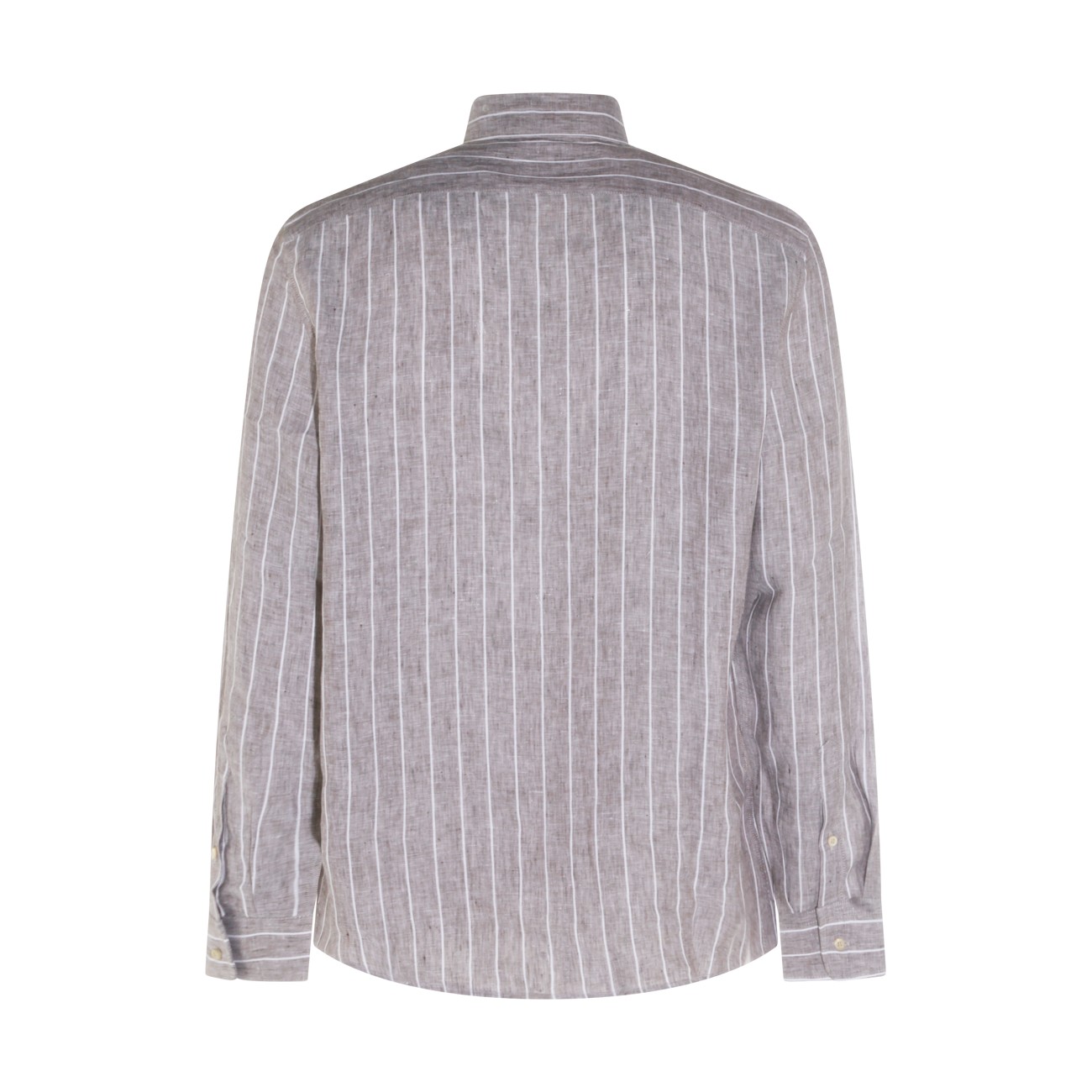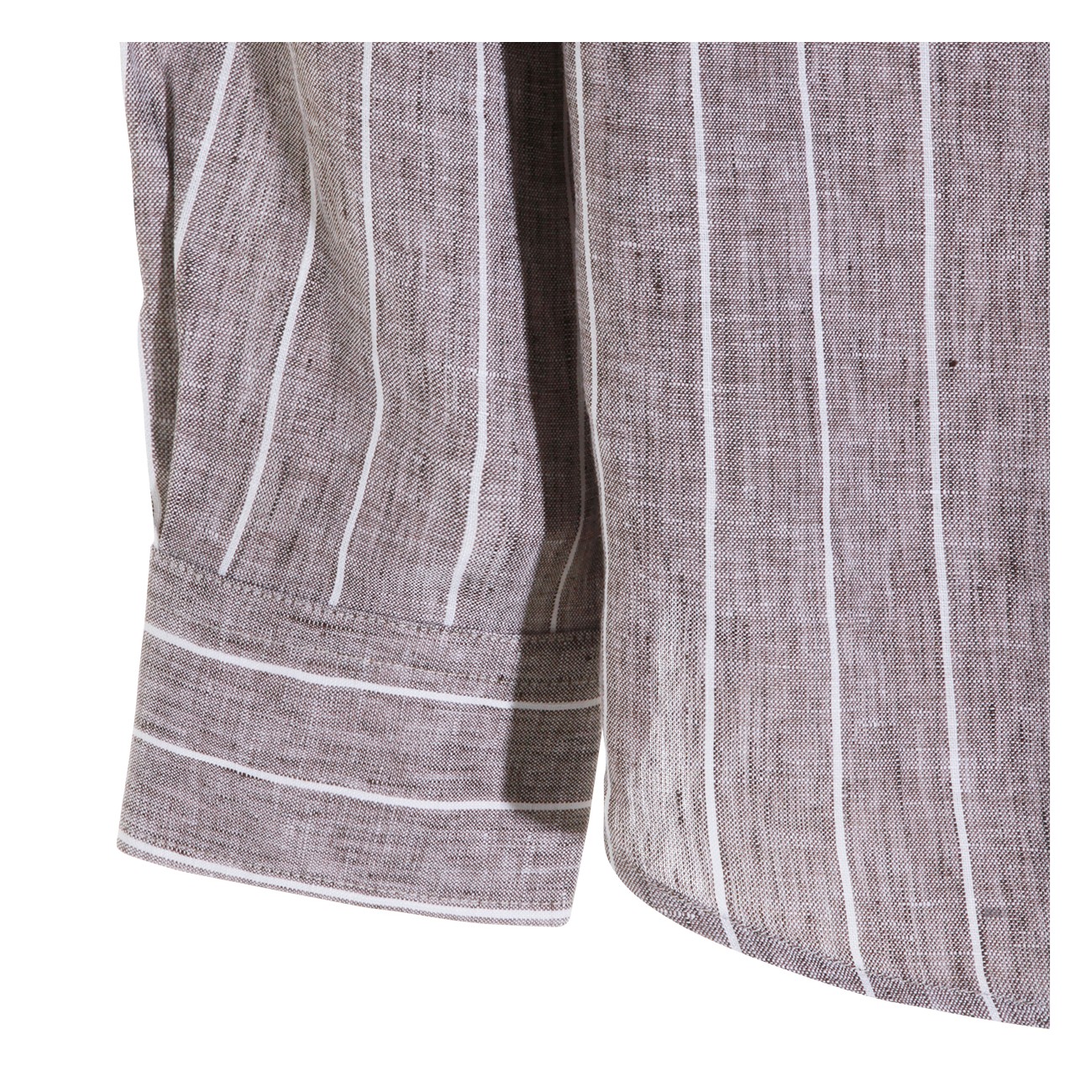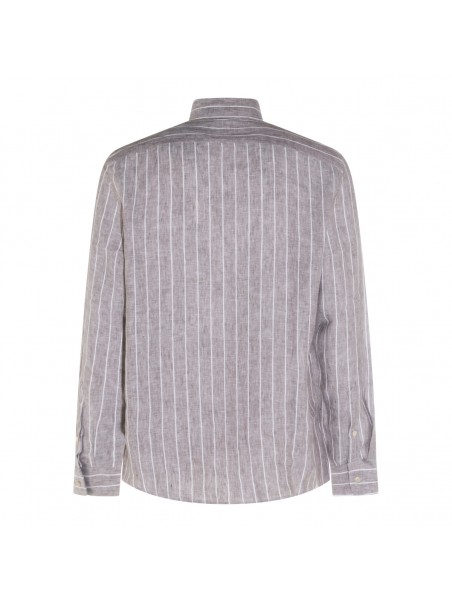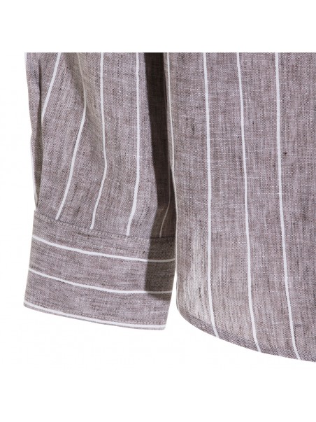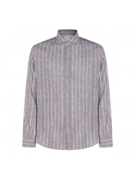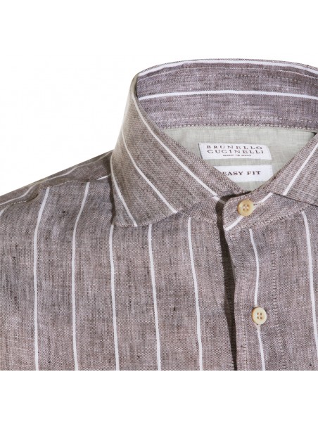 Brown linen shirt from Brunello Cucinelli featuring shirt collar, buttons fastening, long sleeves, vertical stripes pattern and regular vestibility.