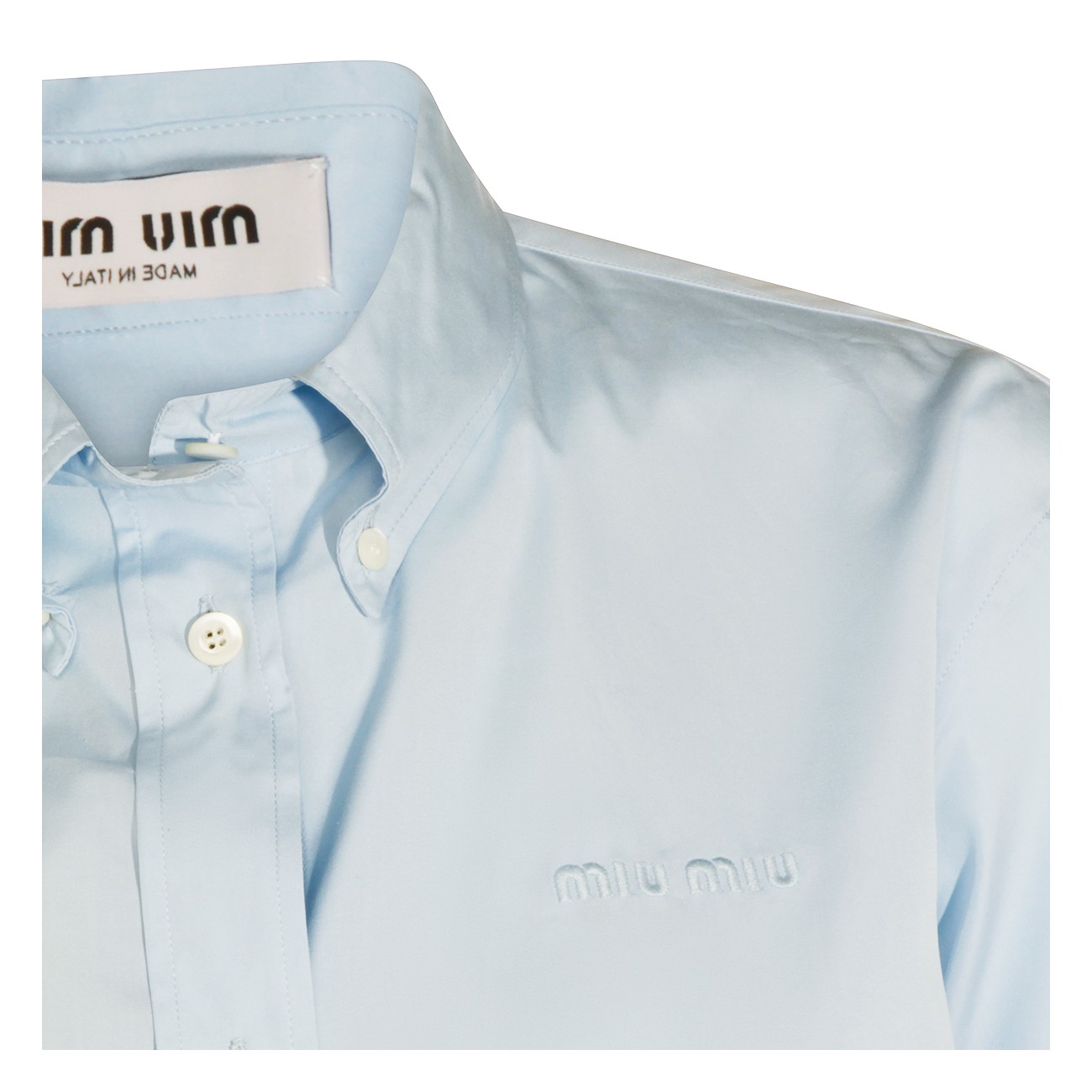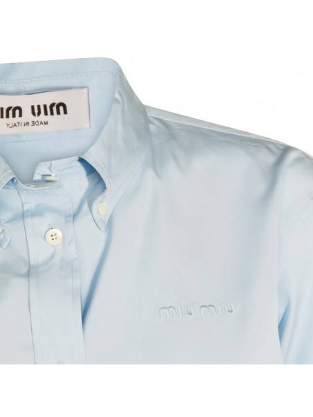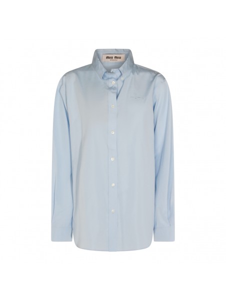 Light blue cotton shirt from Miu Miu featuring long sleeves, shirt collar, buttons fastening and regular vestibility.