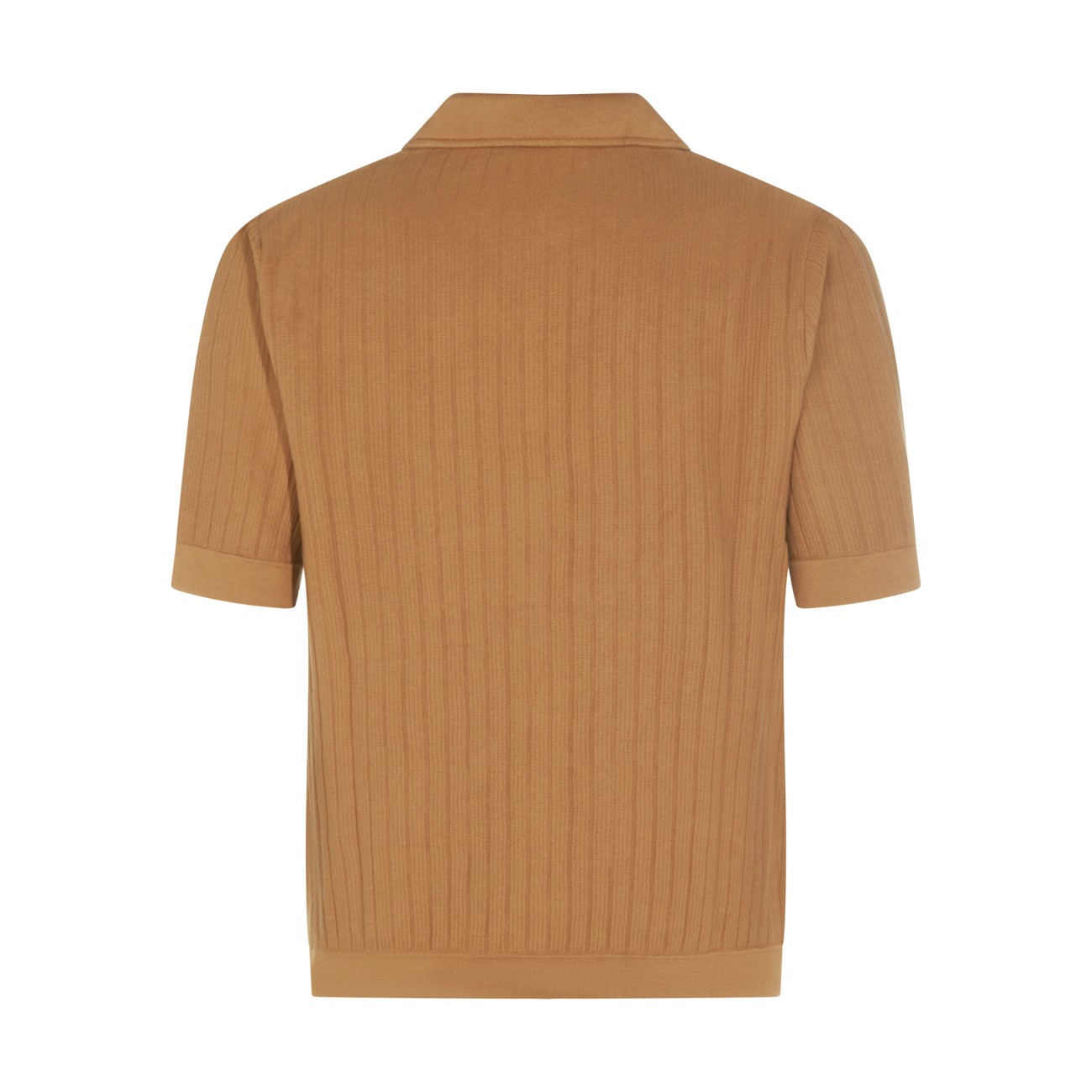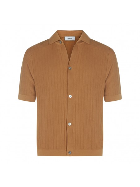 Camel cotton shirt from Lardini featuring classic collar, short sleeves, buttons fastening, ribbed trim and regular fit.