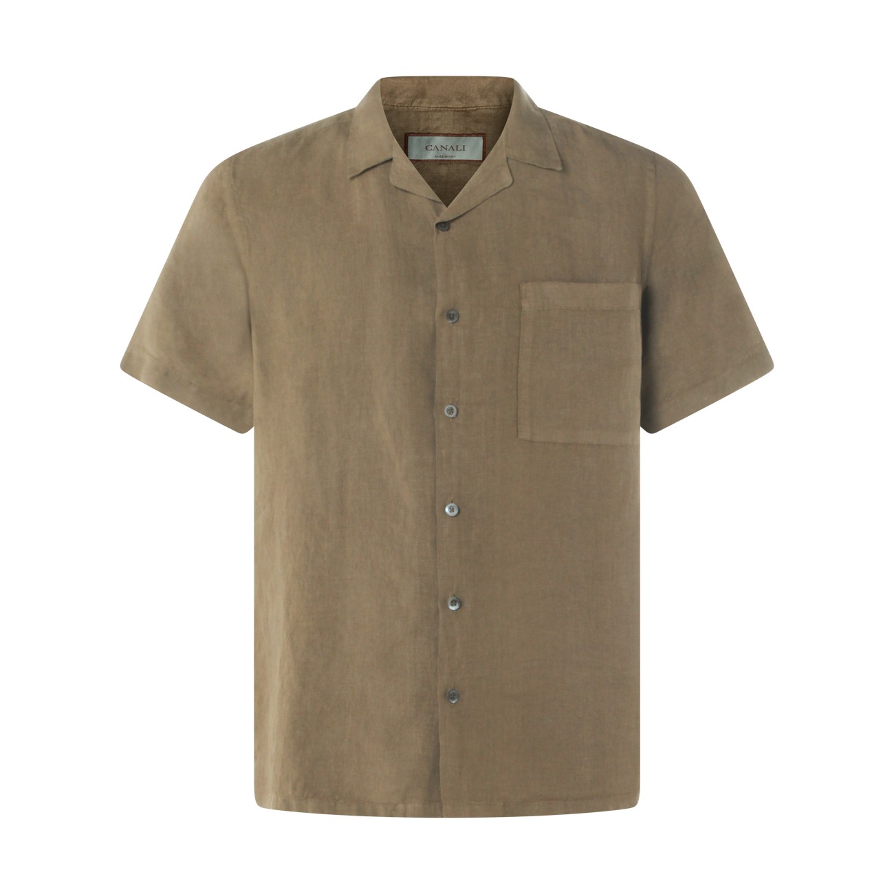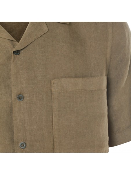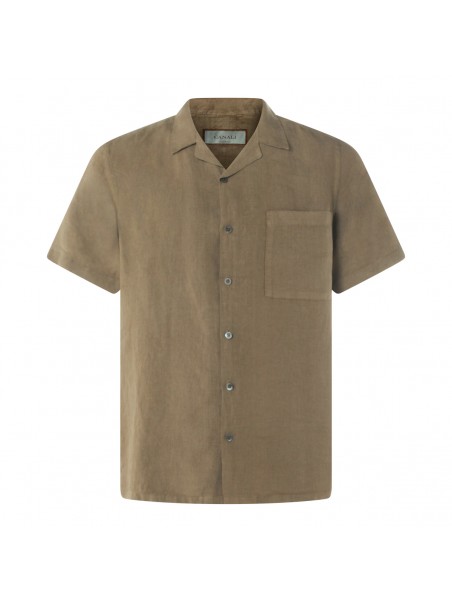 Green linen shirt from Canali featuring shirt collar, short sleeves, buttons fastening, chest pocket and regular fit.