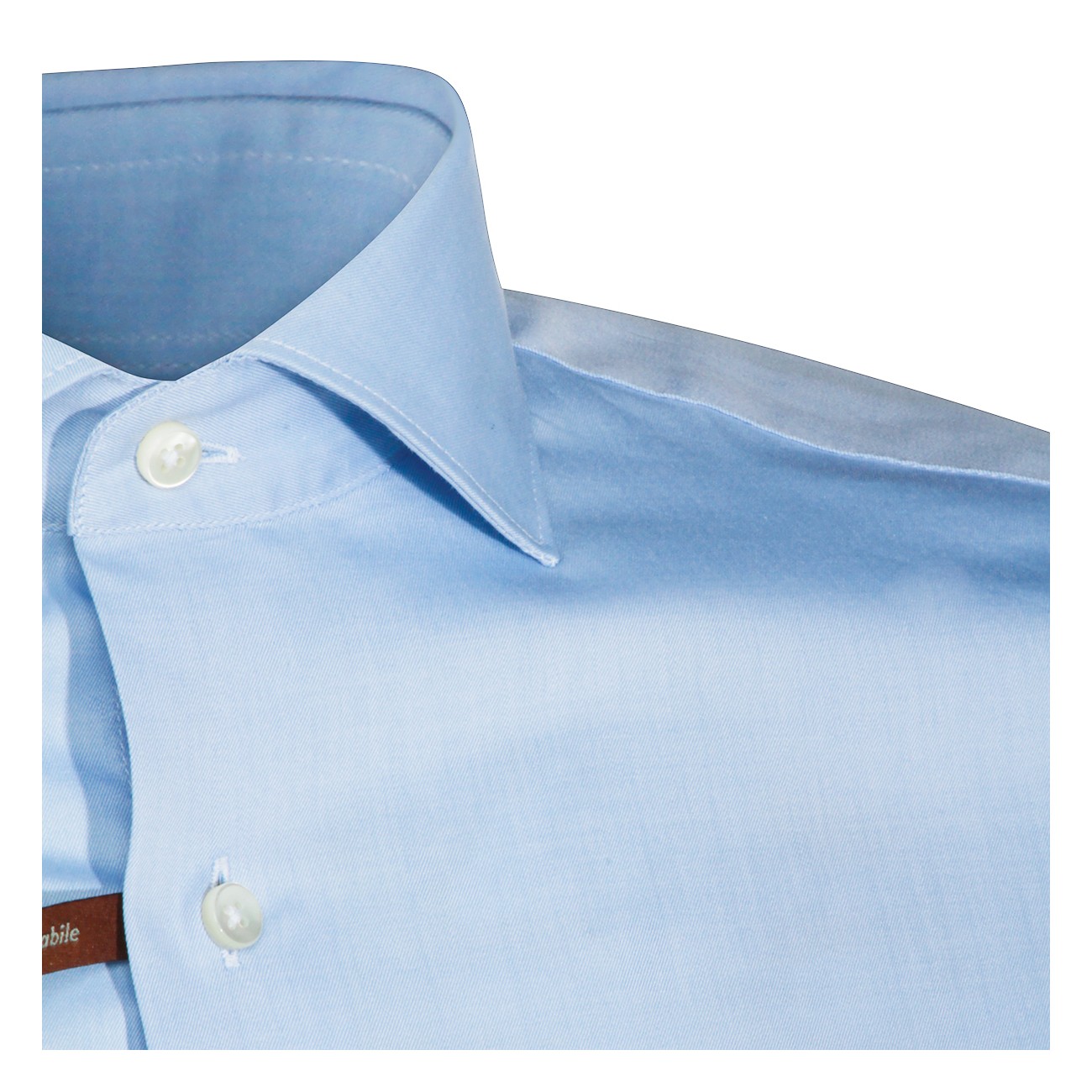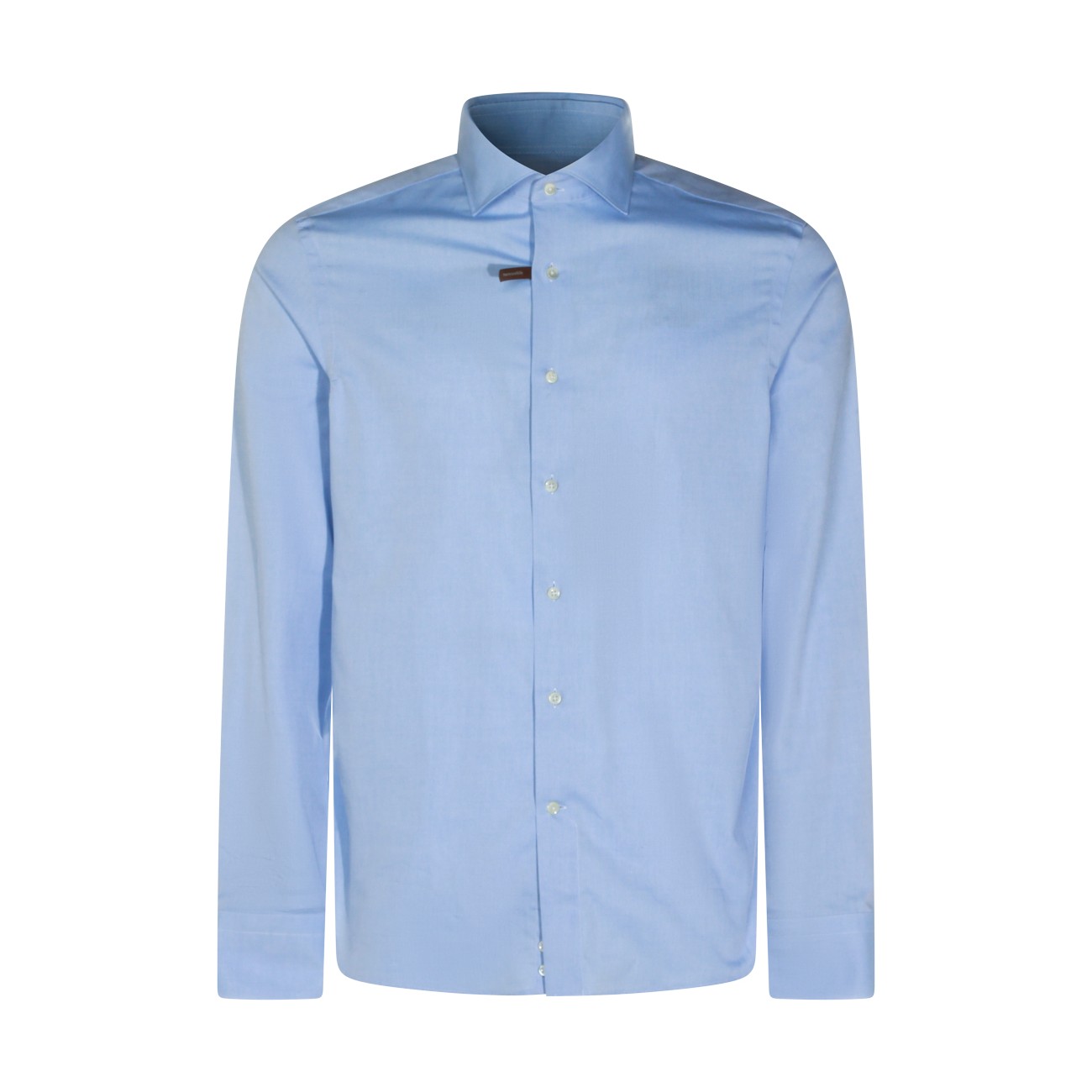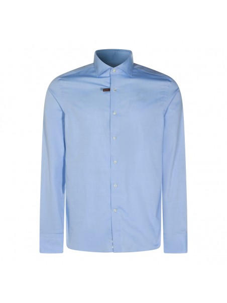 Light blue cotton shirt from Canali featuring pointed shirt collar, long sleeves, buttons fastening, buttoned cuffs and regular vestibility.
