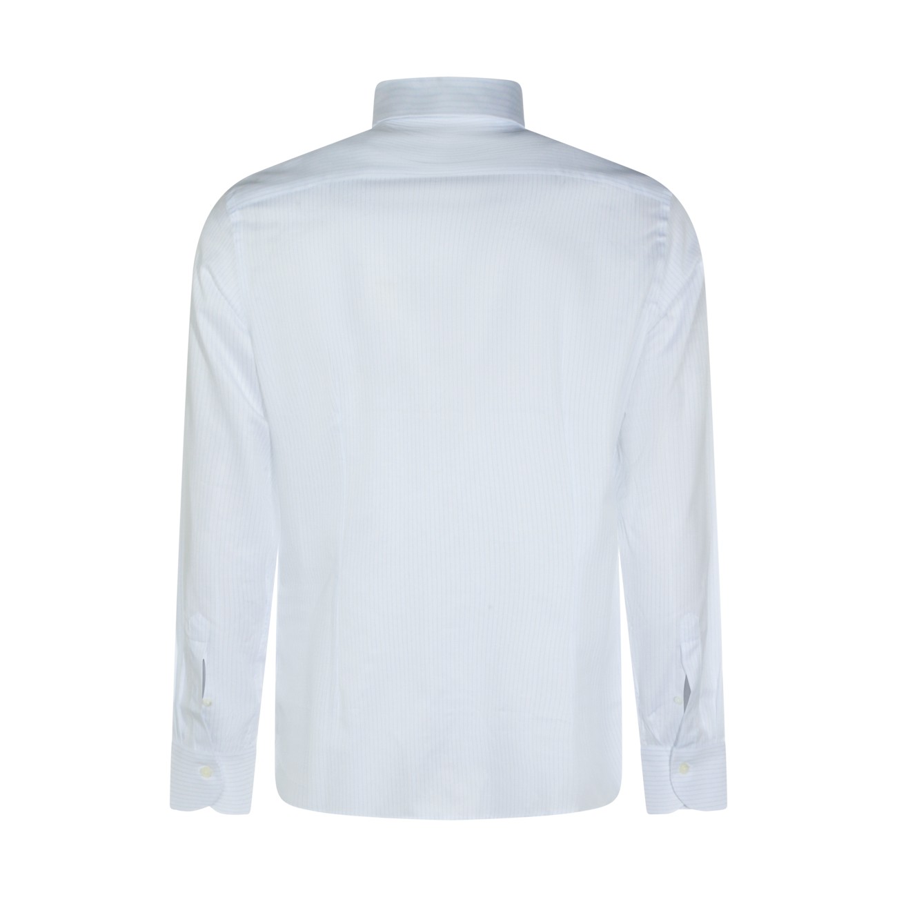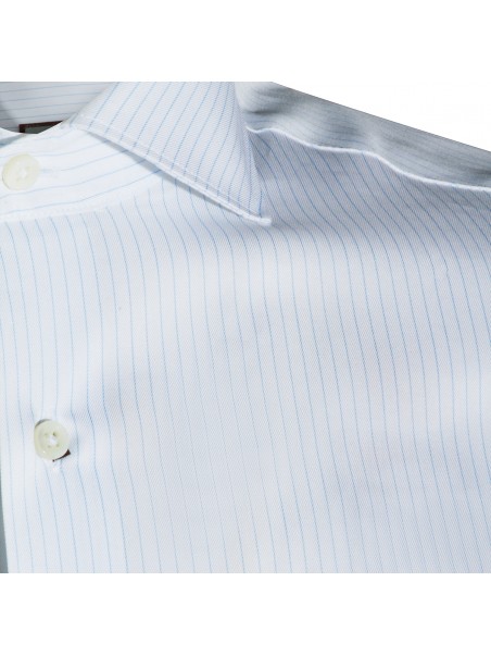 White and light blue cotton shirt from Canali featuring pointed shirt collar, long sleeves, buttons fastening, buttoned cuffs, striped motif and regular vestibility.