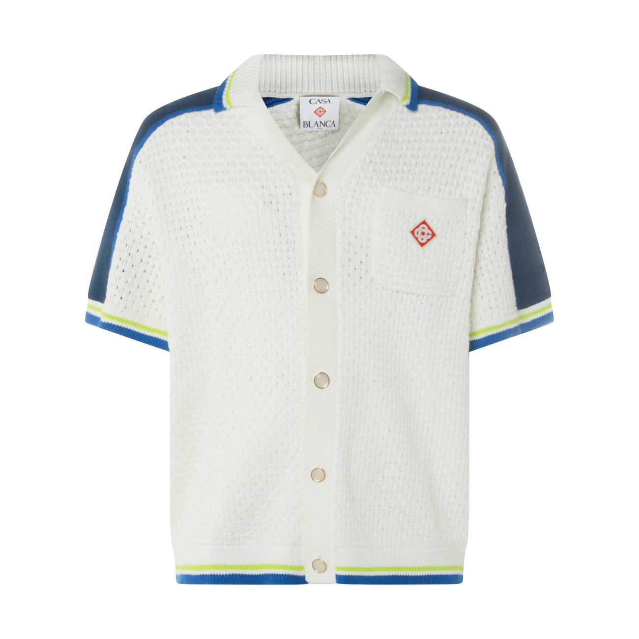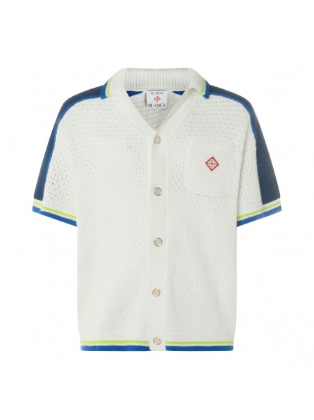 White cotton shirt from Casablanca featuring long sleeves, buttons fastening, logo patch and regular vestibility.