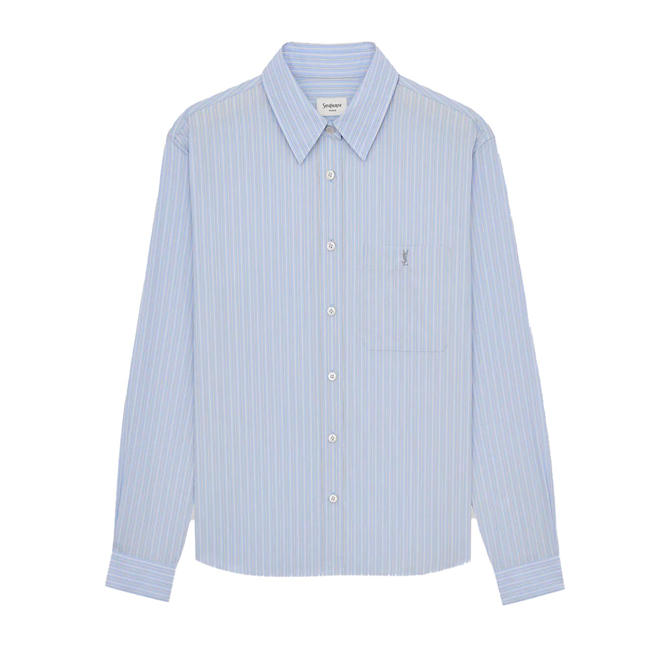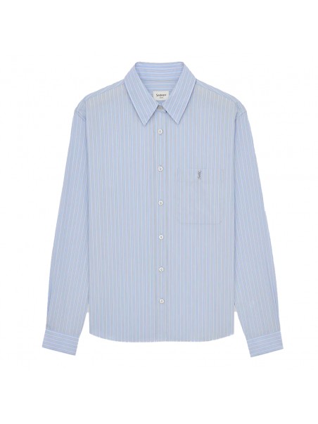 Light blue cotton shirt from Saint Laurent featuring long sleeves, shirt collar, buttons fastening and logo.