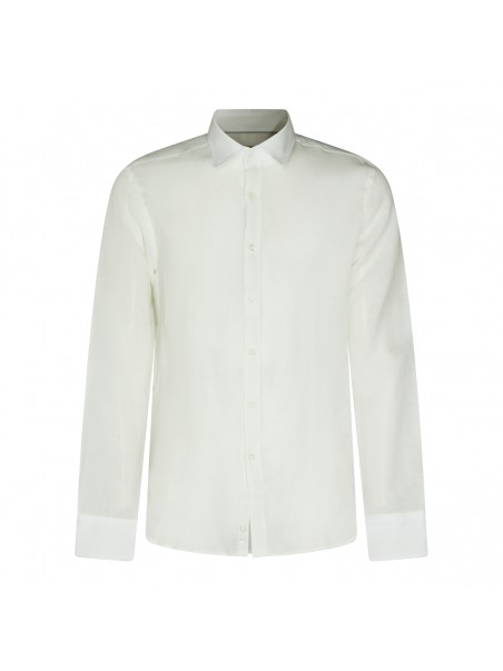 White linen shirt from Canali featuring shirt collar, long sleeves, buttons fastening and regular vestibility.