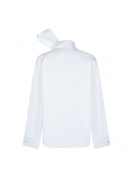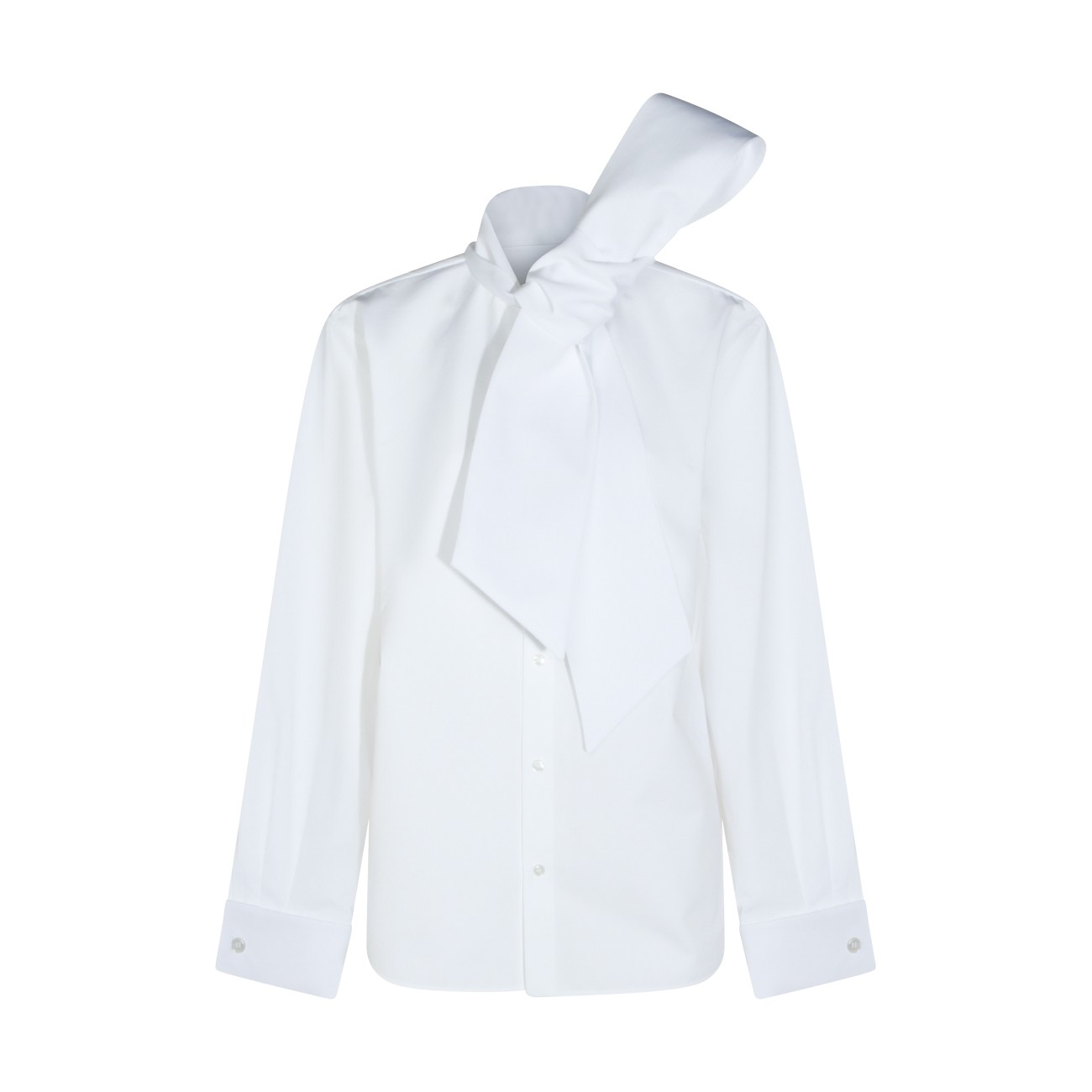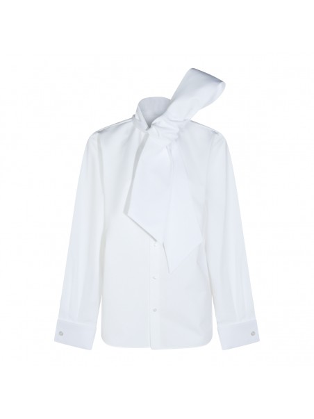 White cotton shirt from Saint Laurent featuring long sleeves, shirt collar, buttons fastening and bow detail.