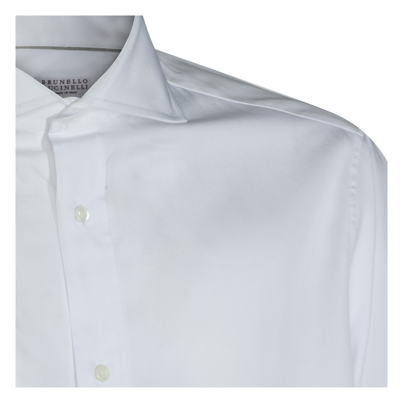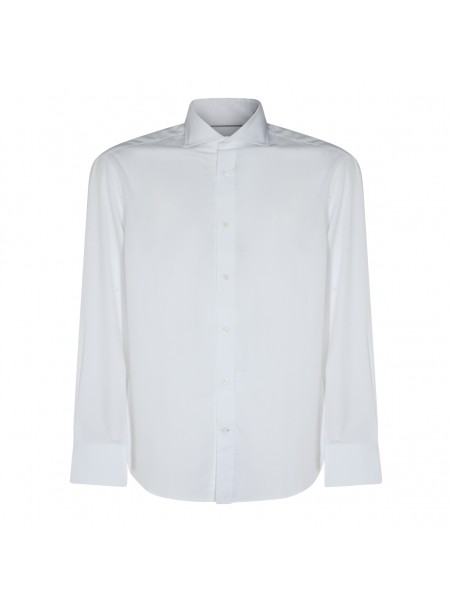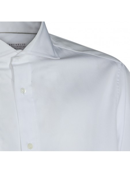 White cotton shirt from Brunello Cucinelli featuring long sleeves, shirt collar, round hem and regular vestibility.