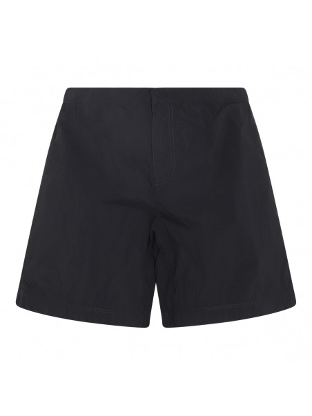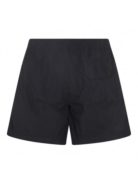Black stretch shorts from Ten-C featuring rear concelaed zip closure, regular fit, mid length and side pockets.