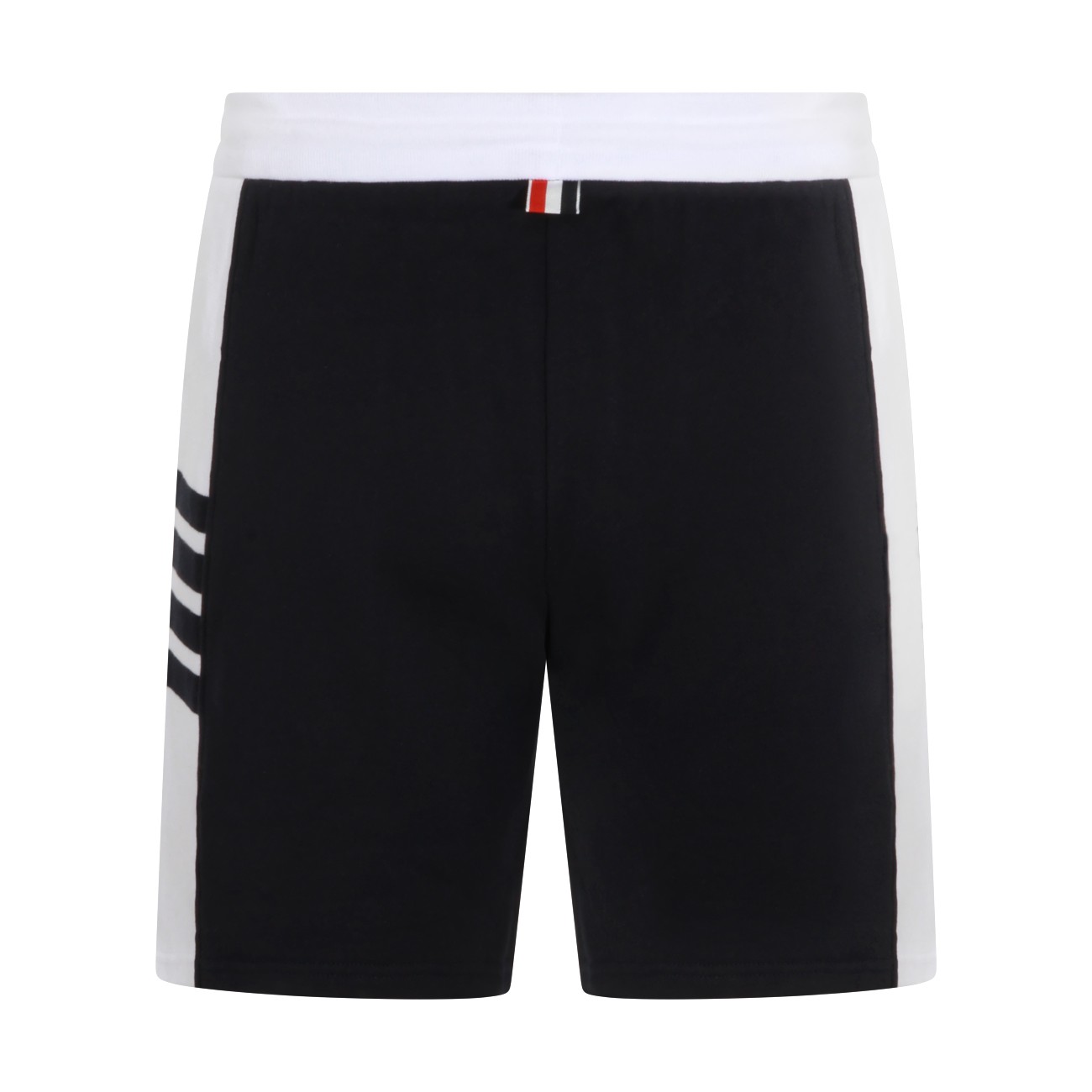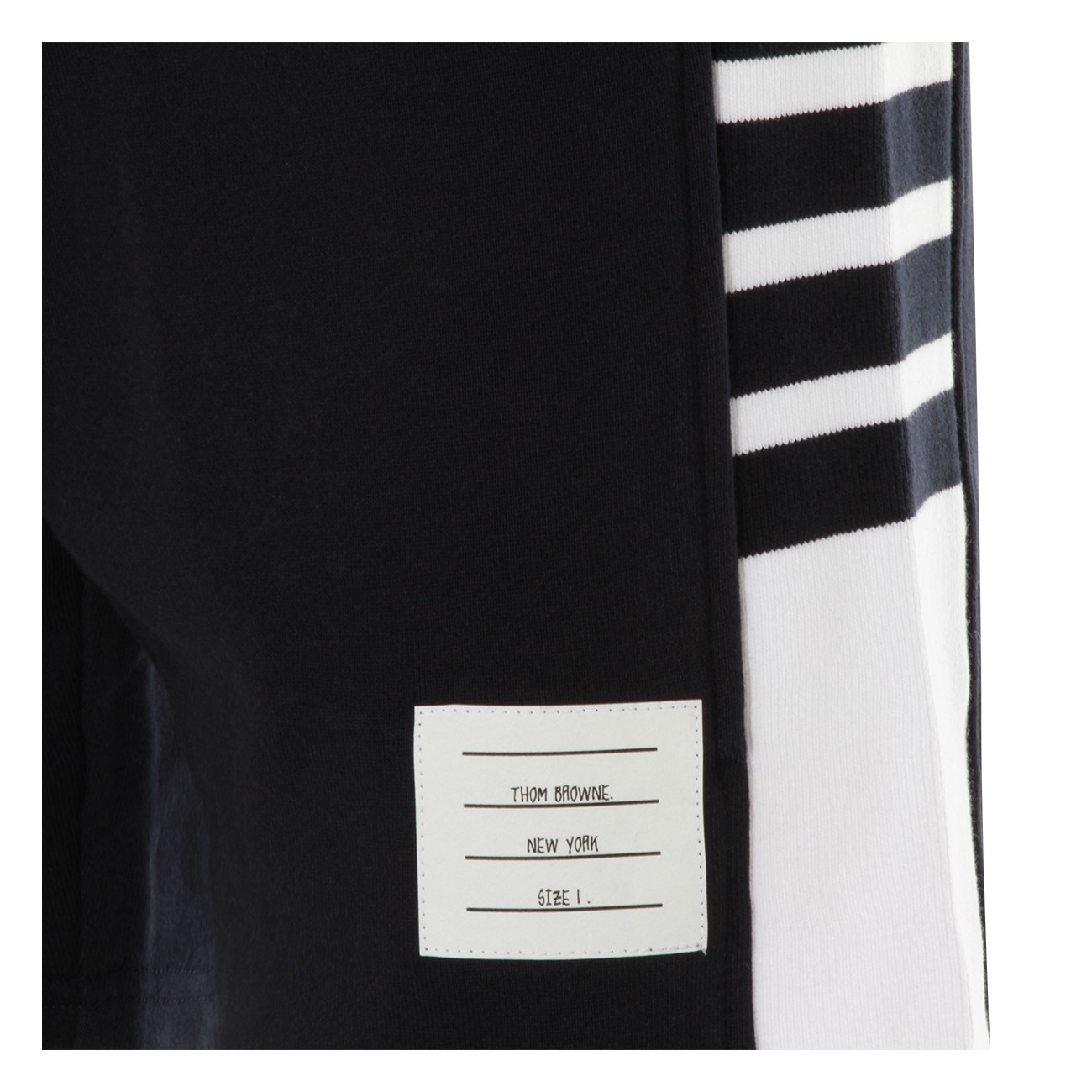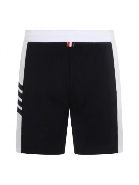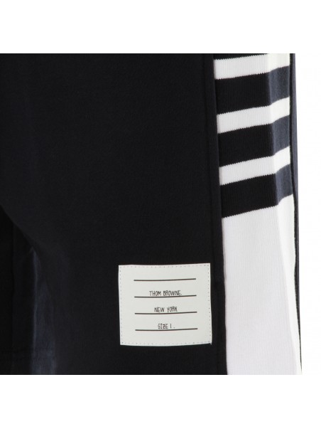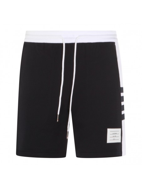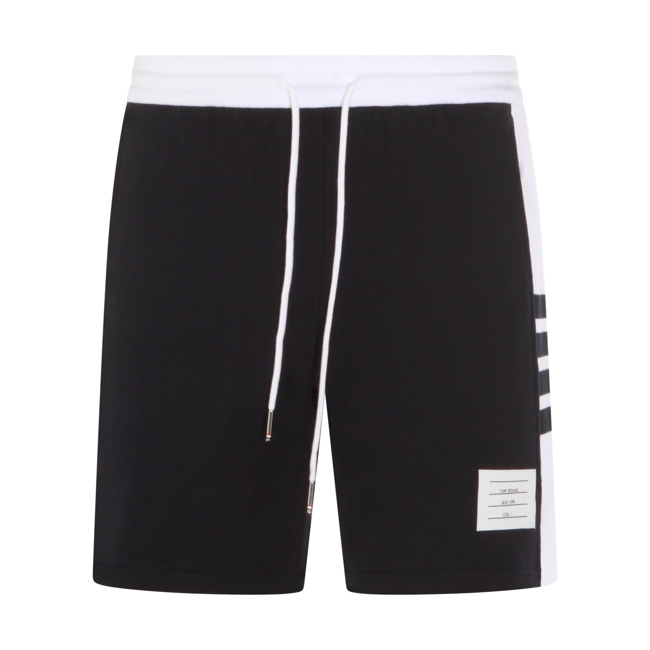 Blue cotton shorts from Thom Browne featuring high waist, lace fastening, white details, logo and regular length.
