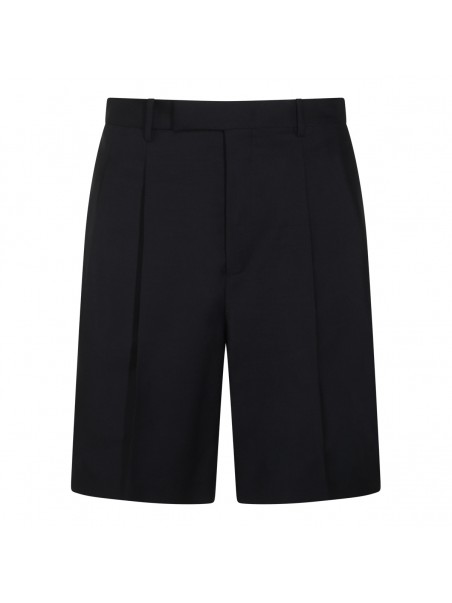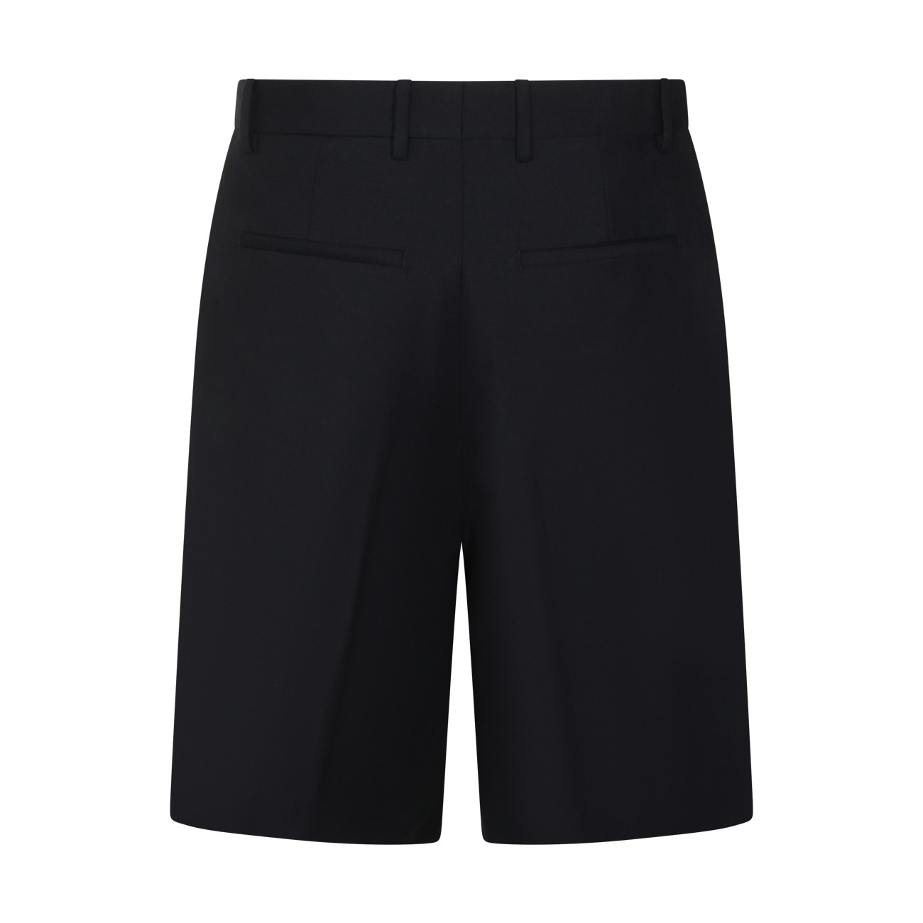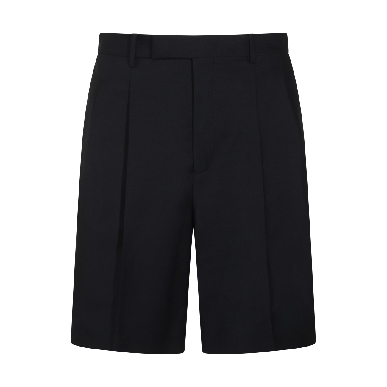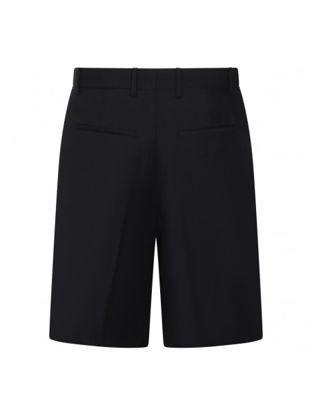 Dark blue wool shorts from Jil Sander featuring high waist, belt loops, zip fastening, pockets and regular vestibility.