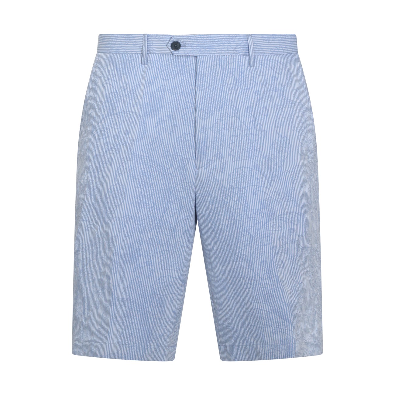 Light blue cotton shorts from Etro featuring high waist, belt loops, zip fastening, pockets and soft vestibility.