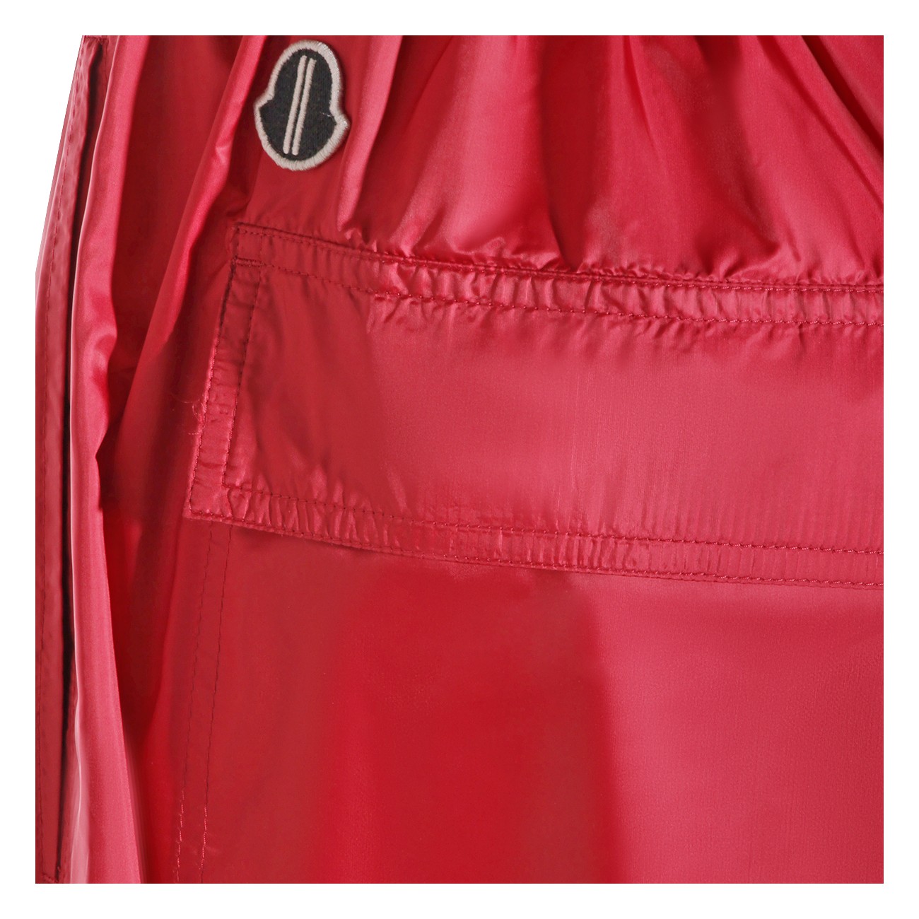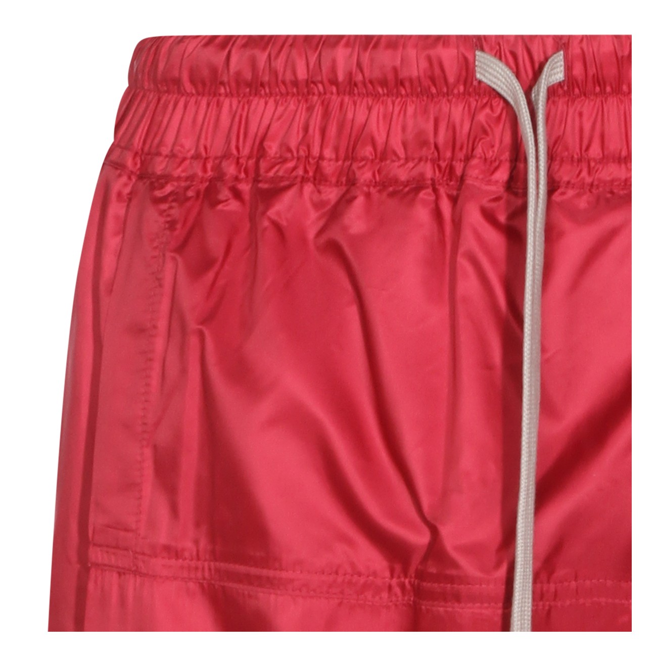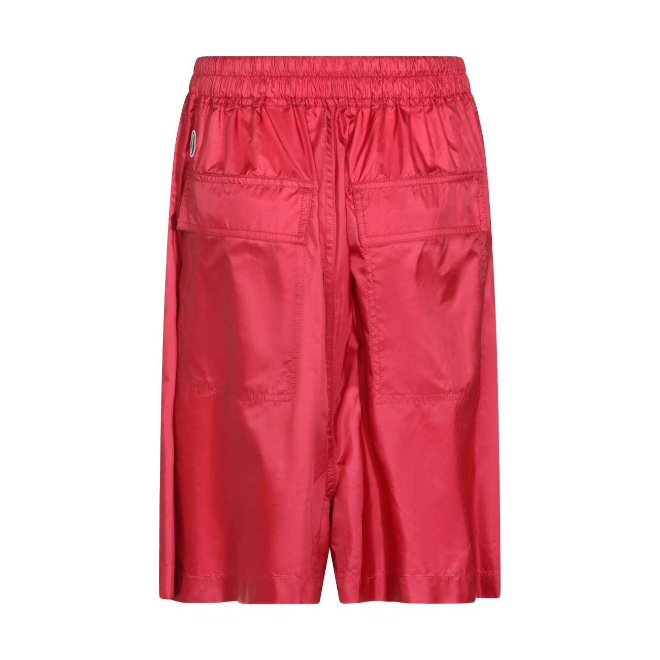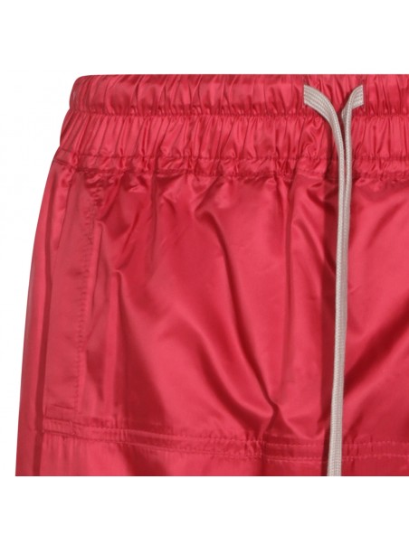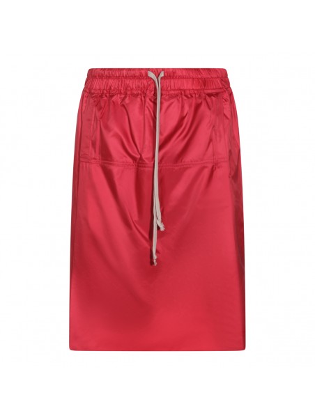 Red kiltshorts from Moncler + Rick Owens featuring drawstring waist, side pockets, patch pockets with button closure, embroidered logo patch and regular vestibility.