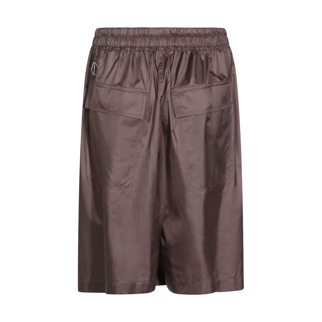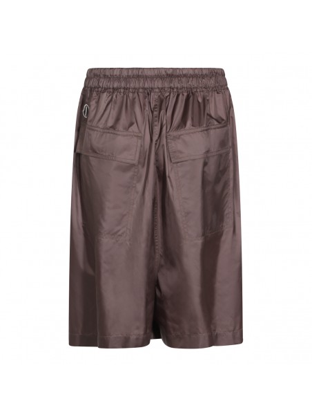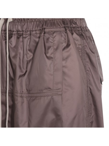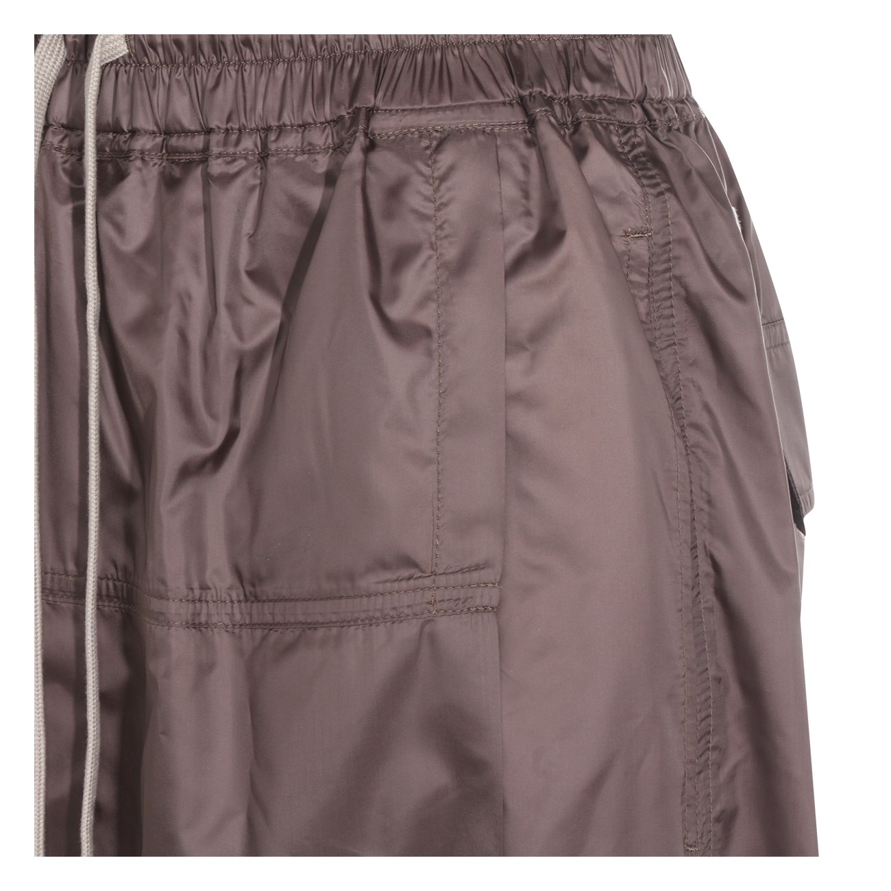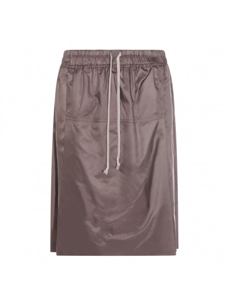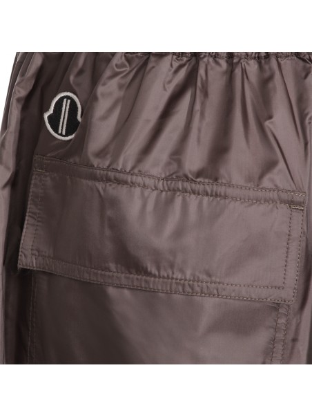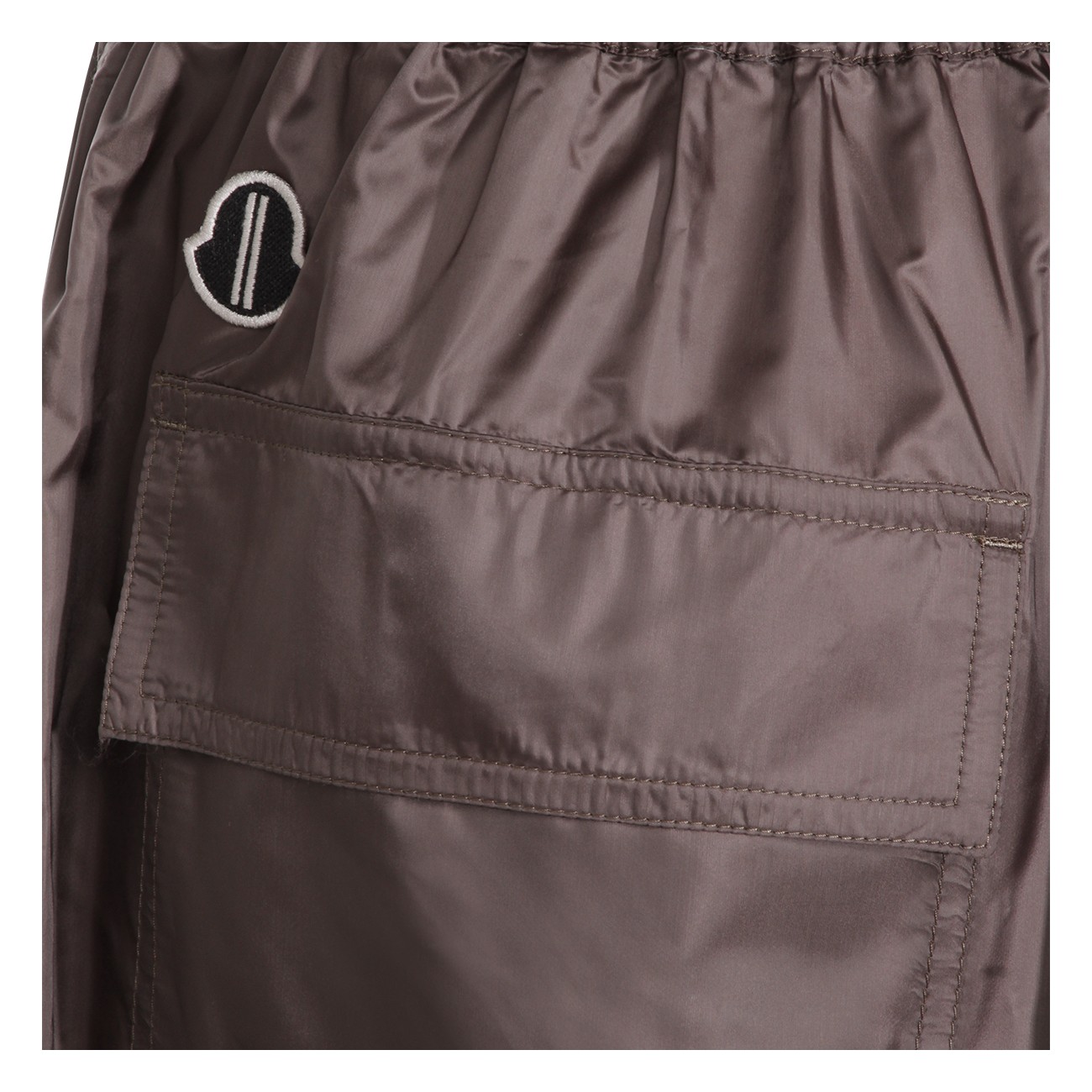 Dark grey kiltshorts from Moncler + Rick Owens featuring drawstring waist, side pockets, patch pockets with button closure, embroidered logo patch and regular vestibility.