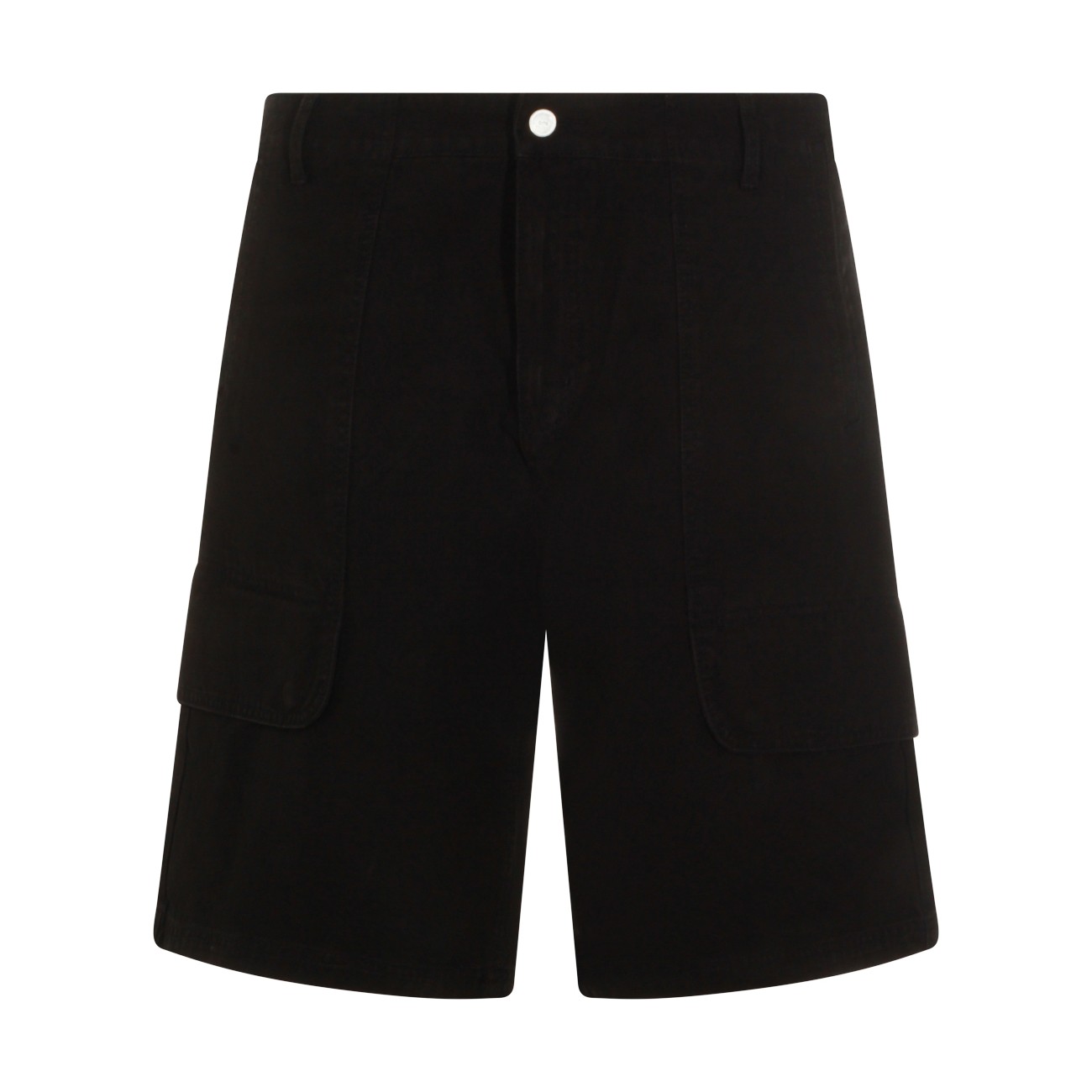 Black cotton shorts from Arte Antwerp featuring frontal fastening, multipockets and knee length.