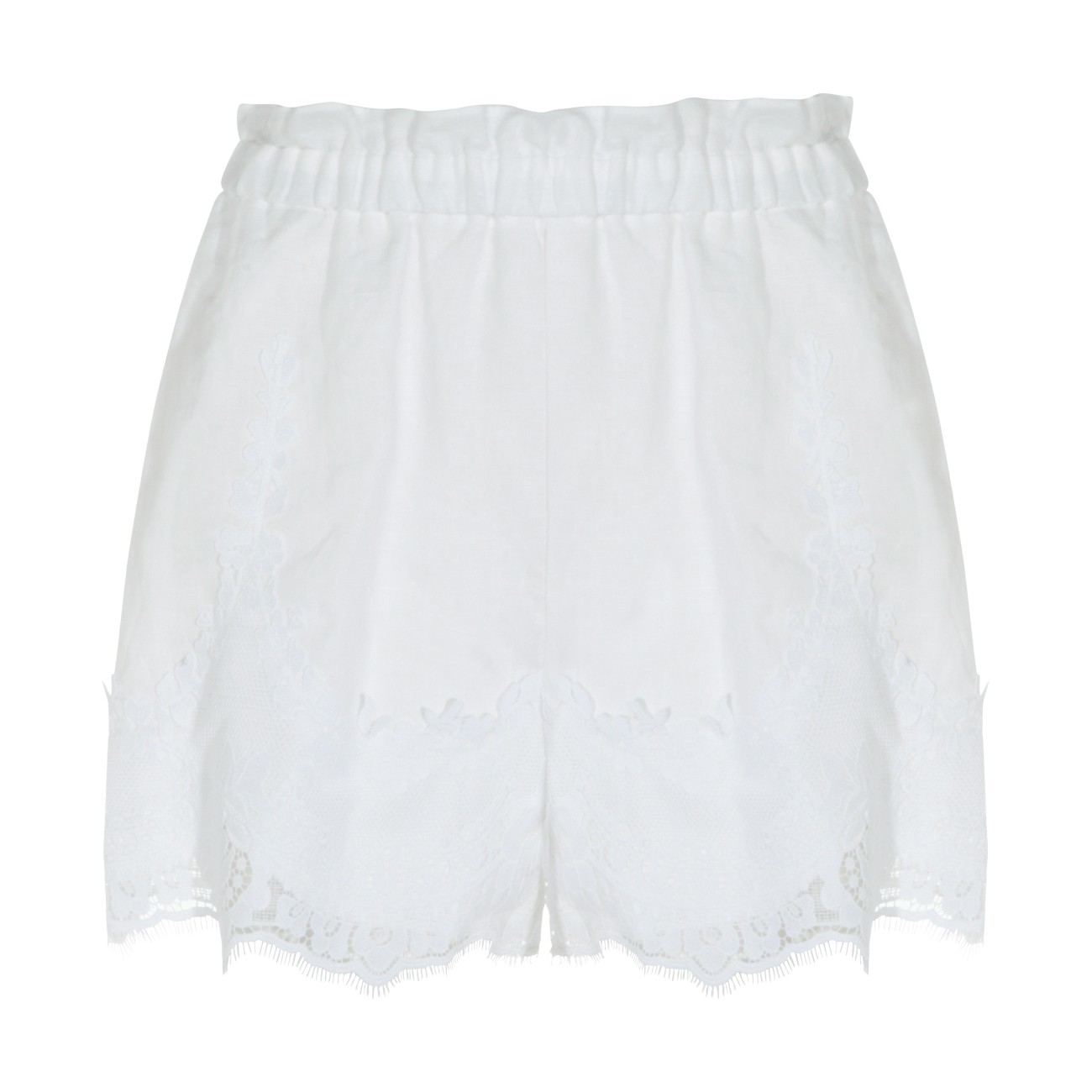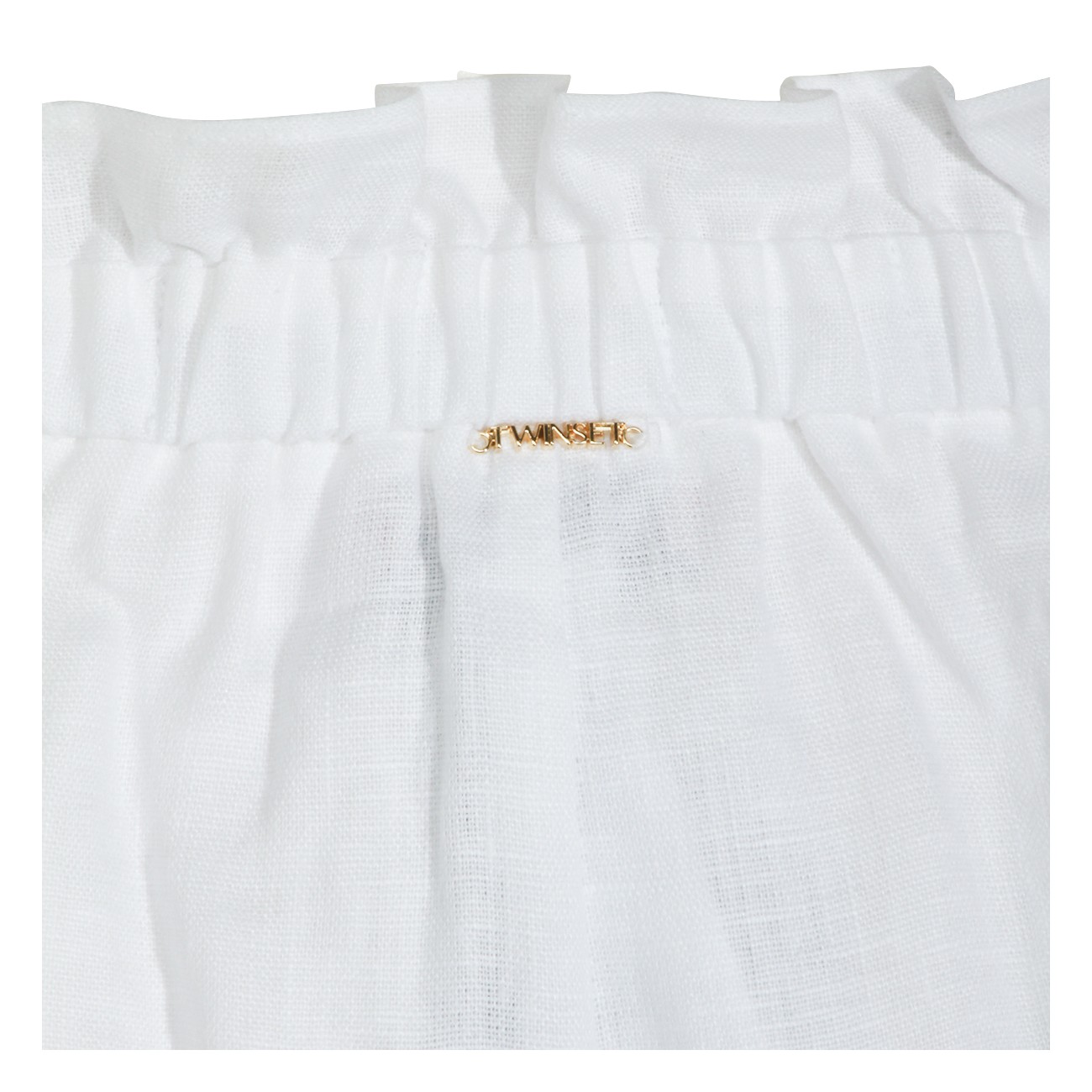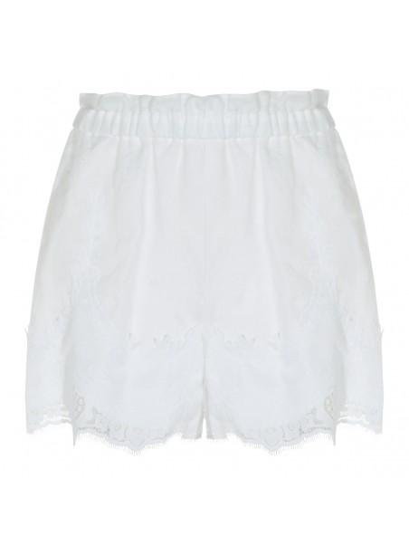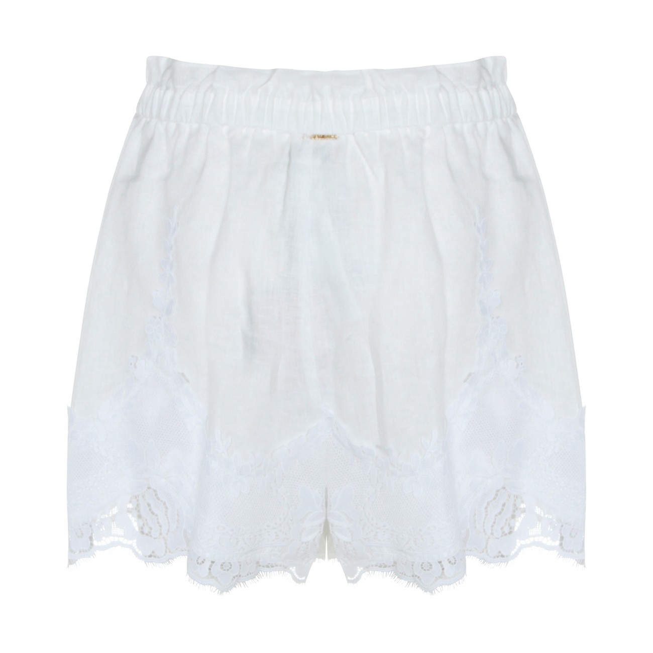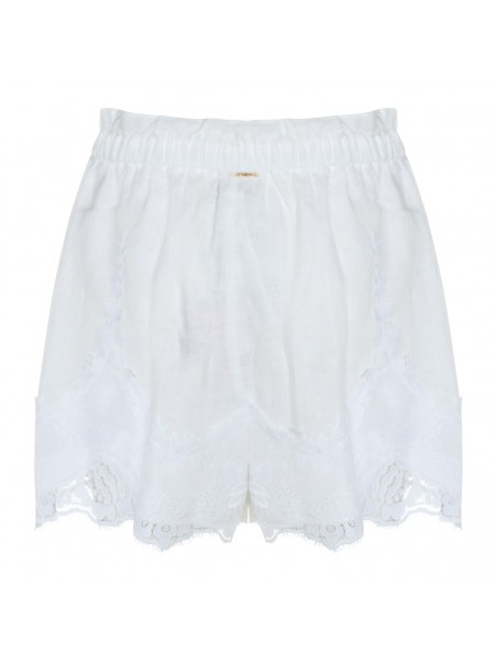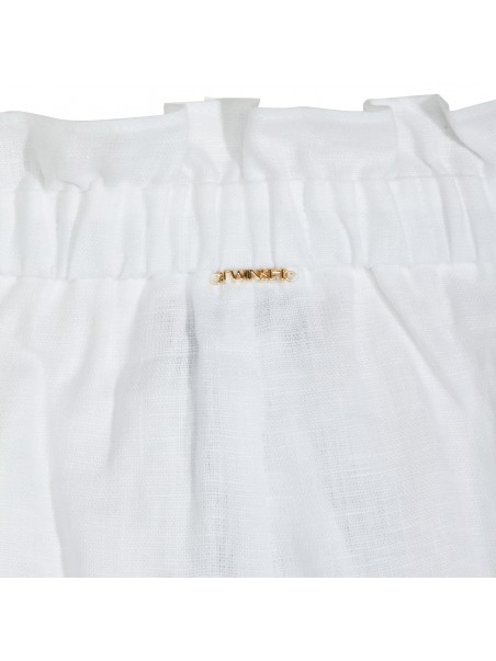 White linen shorts from Twinset featuring elasticizated waist, pockets, fringed hem and mini length.