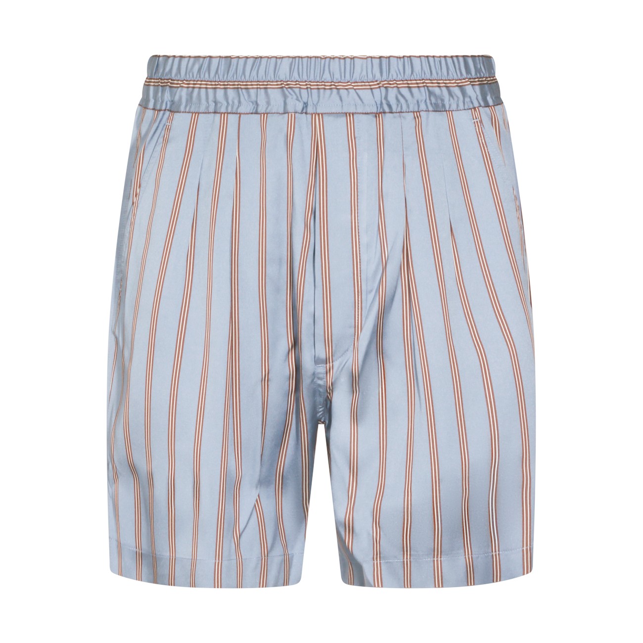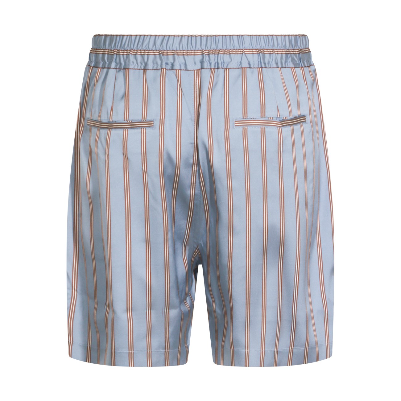 Blue and brown silk shorts from Tom Ford featuring elasticizated waist, pockets and knee length.