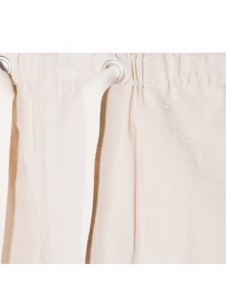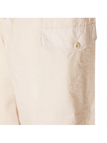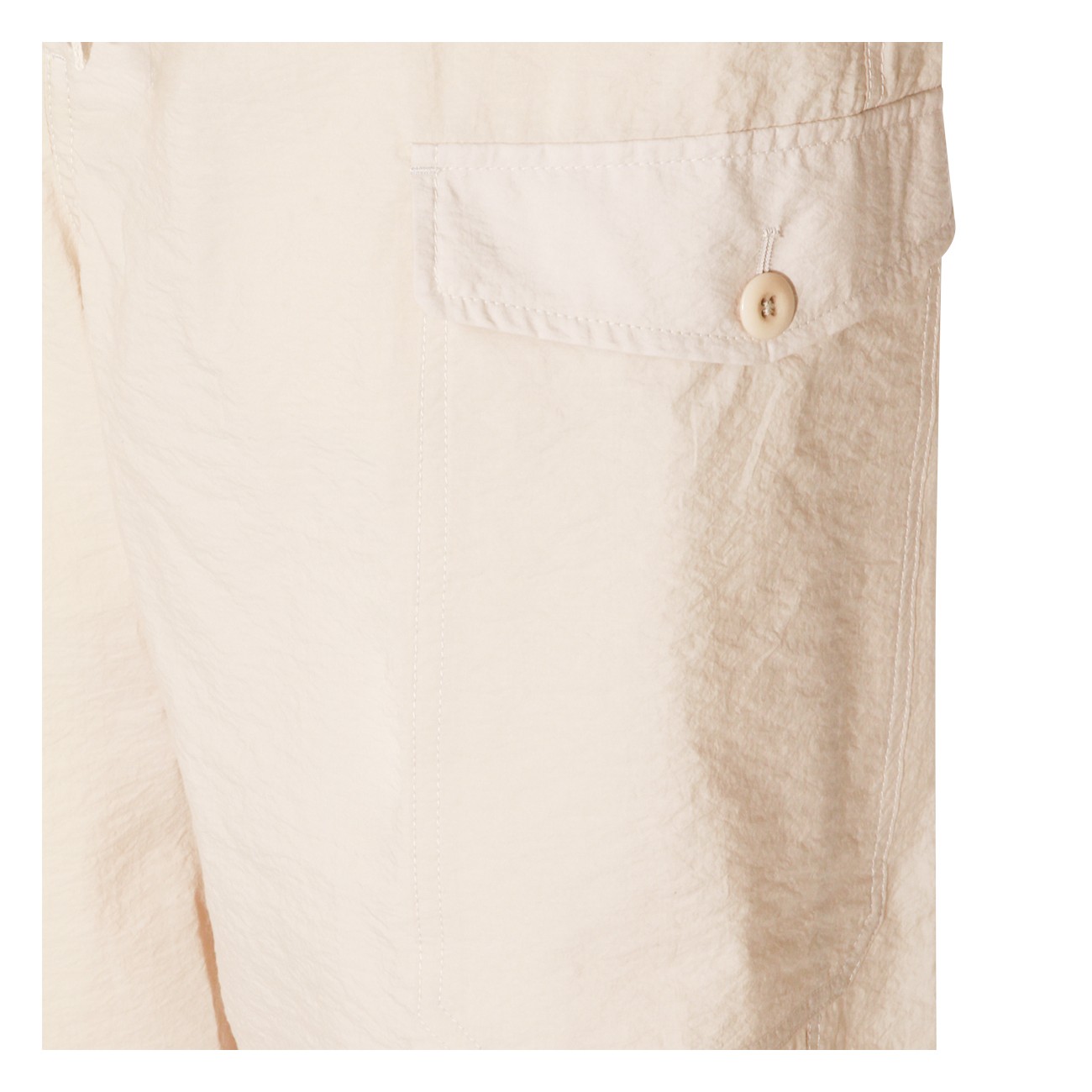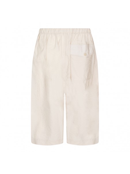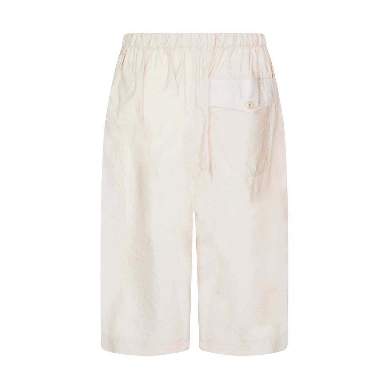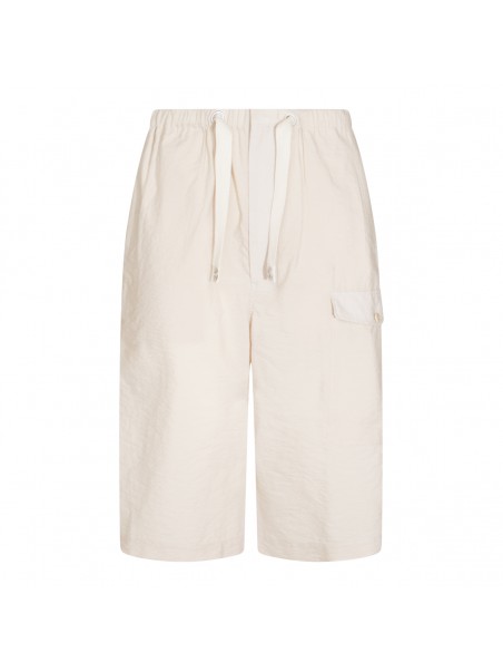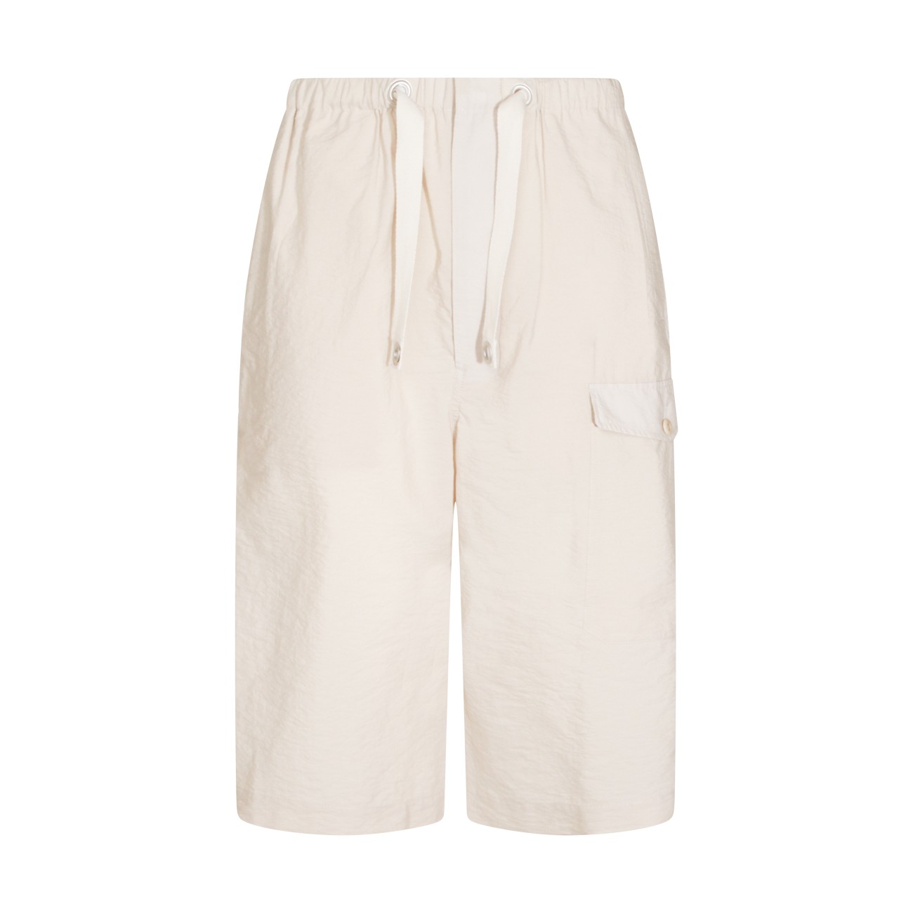 White cotton shorts from Lemaire featuring frontal fastening, drawstrings, pockets, logo patch and knee length.
