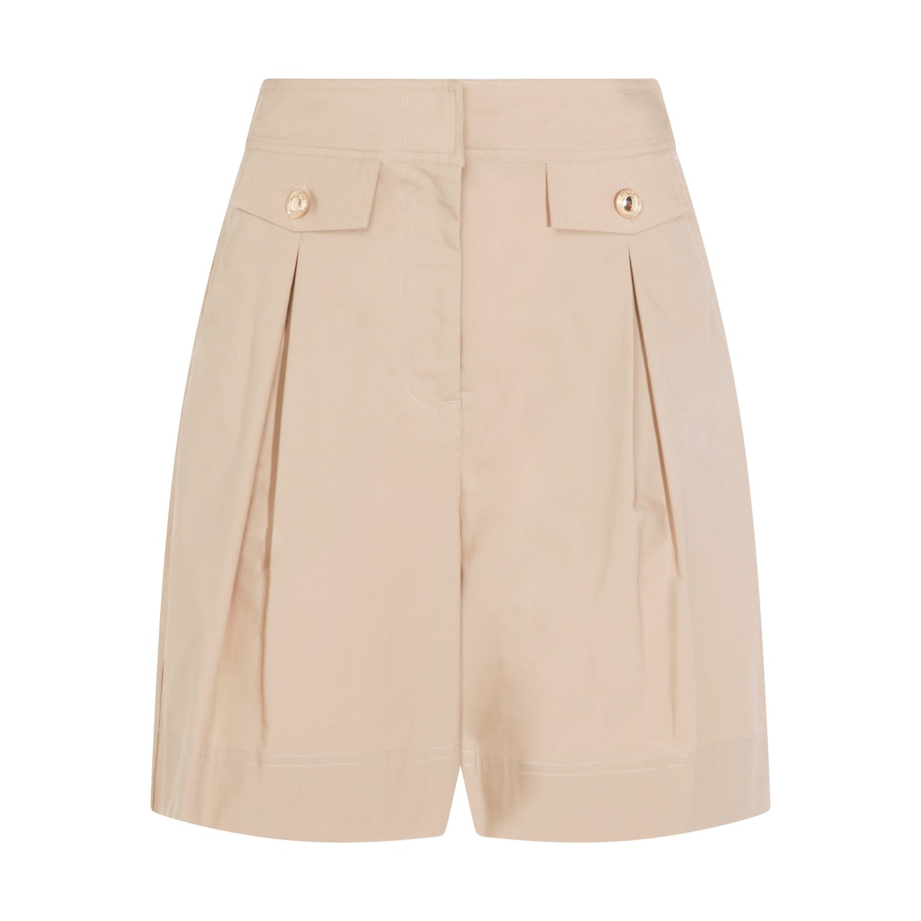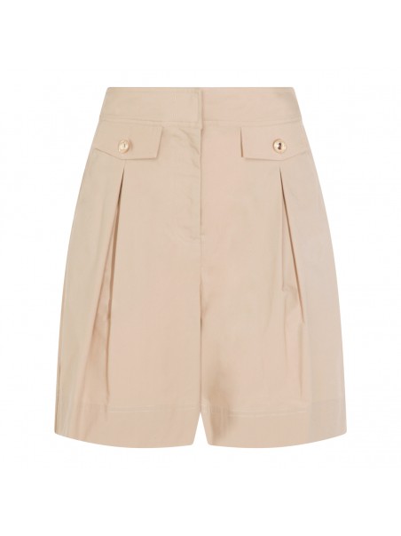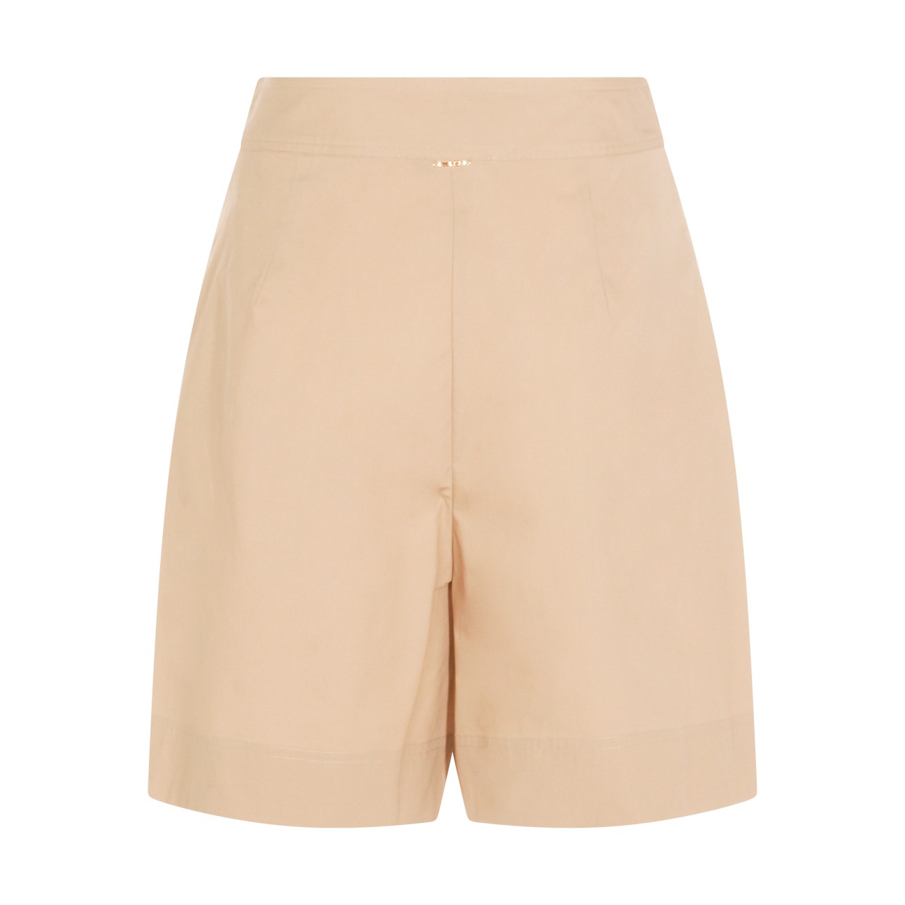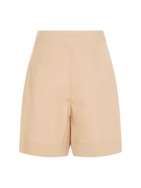 Beige cotton shorts from Twinset featuring high waist, pleats on the front and regular fit.