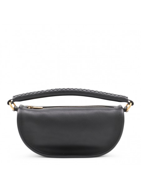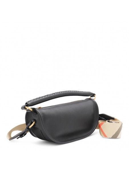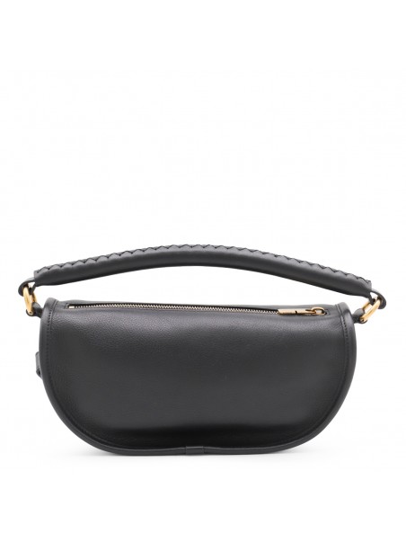 Black leather Clip shoulder bag from Burberry featuring top handle, zip fastening, gold tone hardware and pocket.