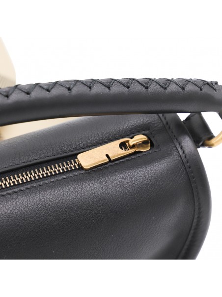 BLACK LEATHER CLIP SHOULDER BAG