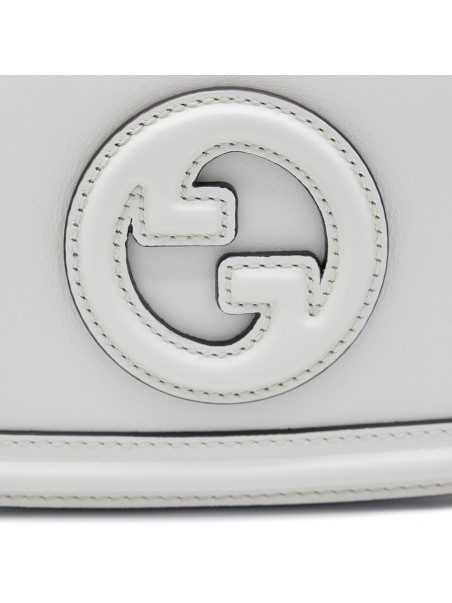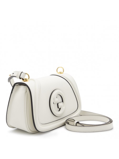 White leather Blondie shoulder bag from Gucci featuring adjustable and removable shoulder bag, magnetic closure, frontal GG logo, main compartment and internal flap pocket.