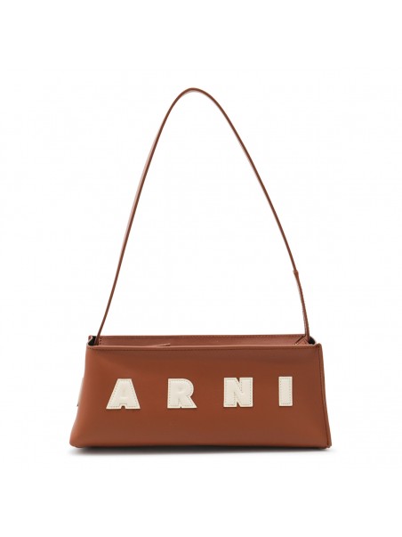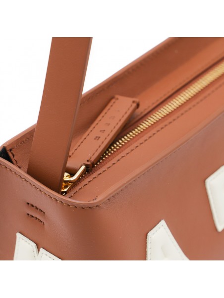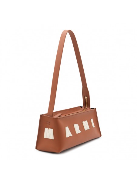 Brown leather Museo shoulder bag from Marni featuring top handle, lettering logo, zip fastening and main compartment.