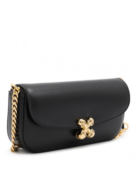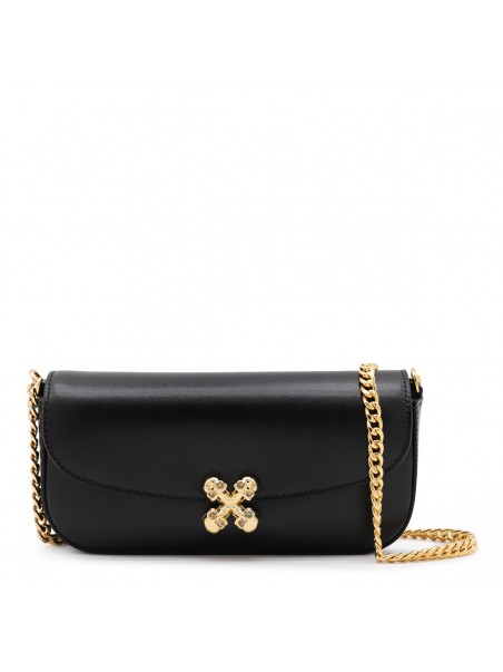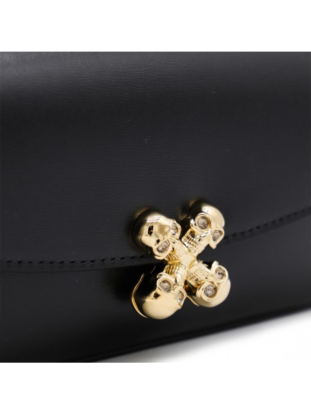 BLACK LEATHER SKULL FLOWER SMALL SHOULDER BAG