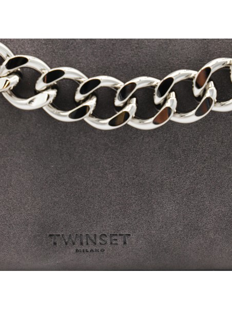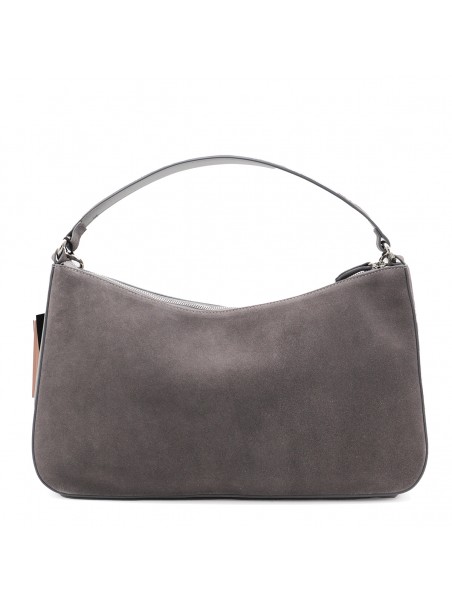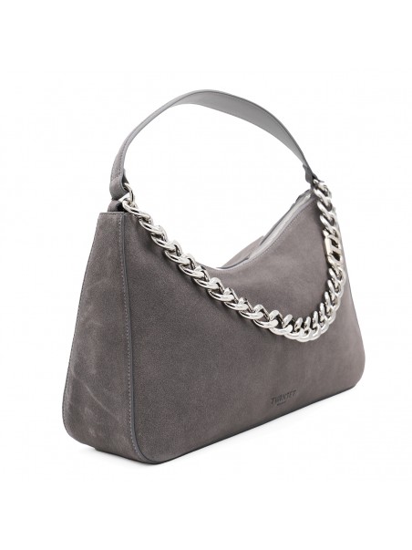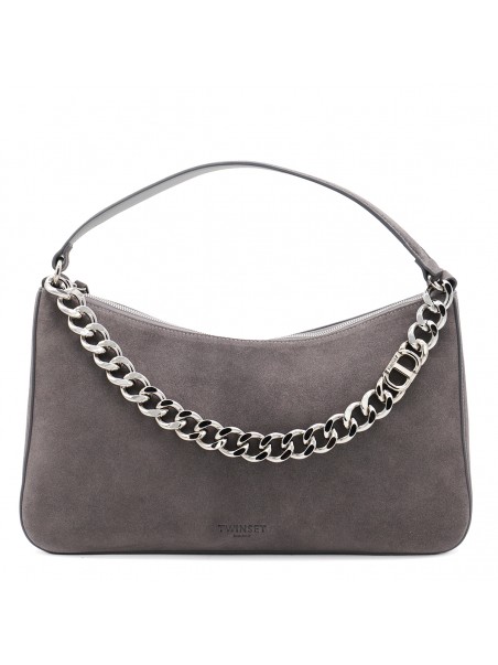 Grey leather Liliane shoulder bag from Twinset featuring suede, top handle, gold tone hardware, zip fastening and main compartment.