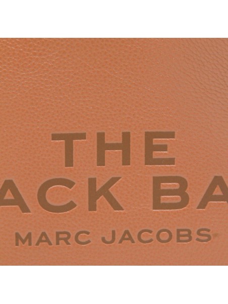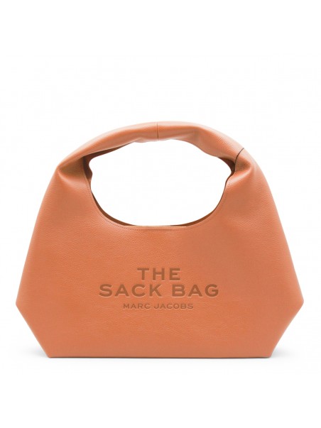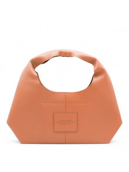 Orange leather shoulder bag from Marc Jacobs featuring top handle, frontal logo, upper fastening and pocket.