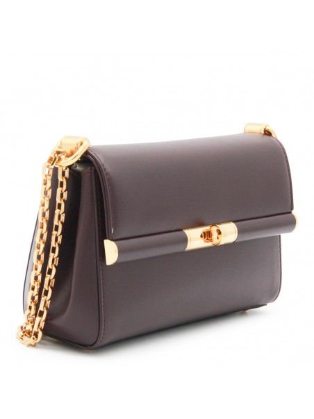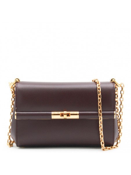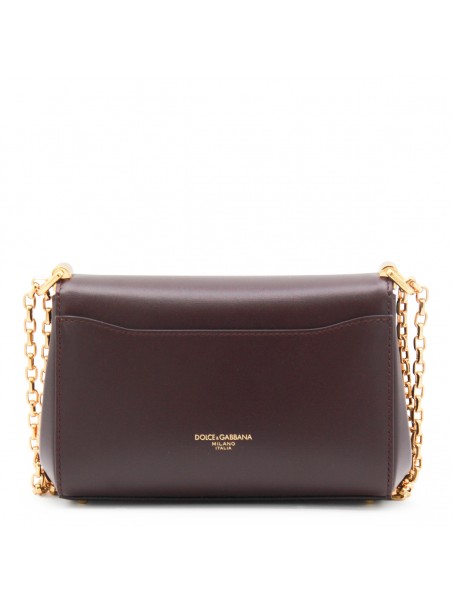Dark red crossbody bag from Dolce&Gabbana featuring frontal fastening, gold tone hardware, inside pocket, chain and animal print.
