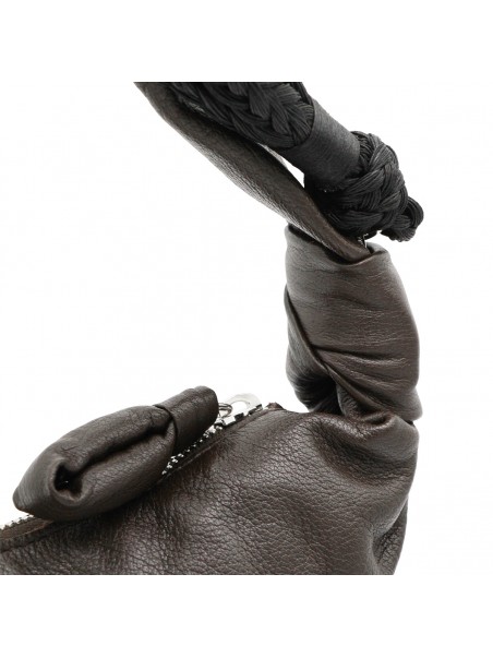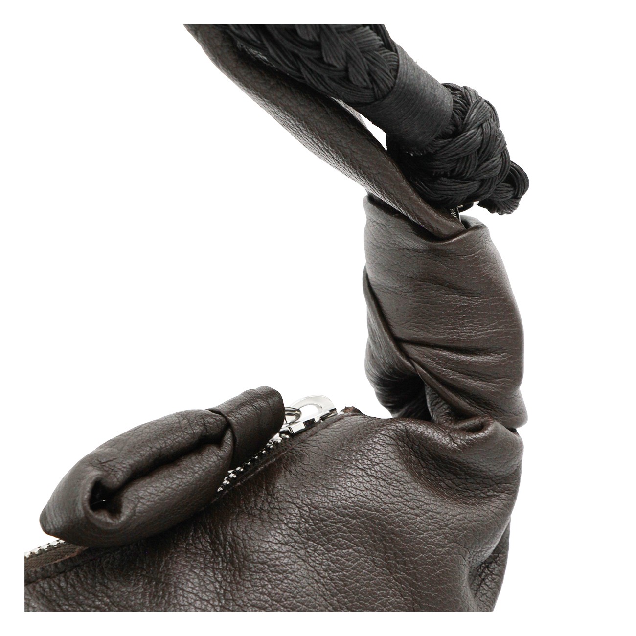 DARK BROWN LEATHER BRAID MEDIUM CROISSANT SHOULDER BAG