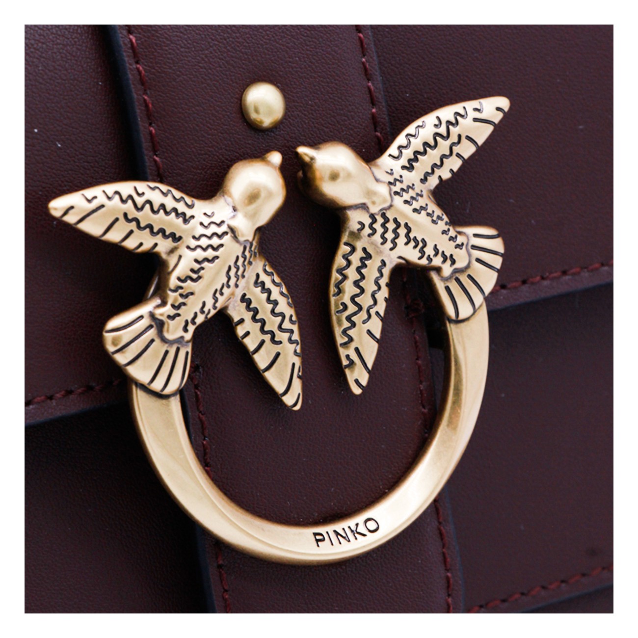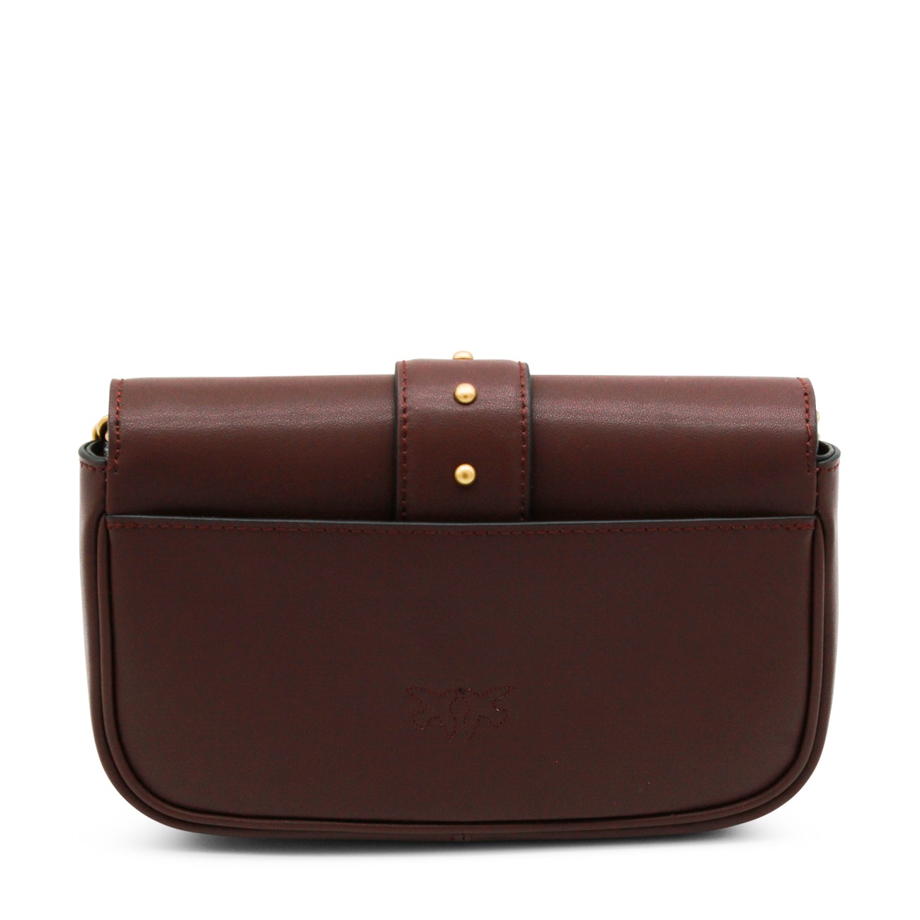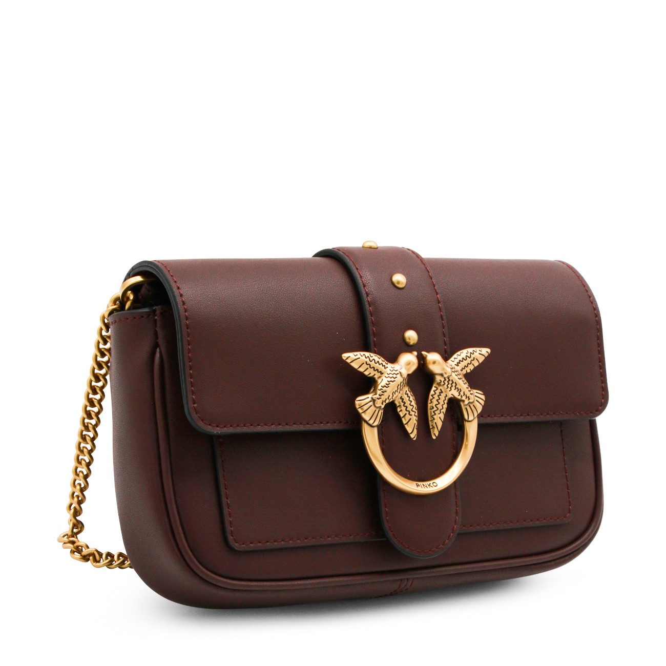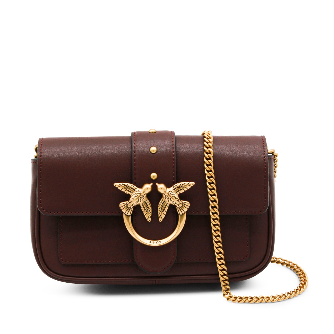 Brown leather Love One Simply Pocket shoulder bag from Pinko featuring detachable gold tone metal chain, buckle closure, main compartment, zip pocket and card slots.