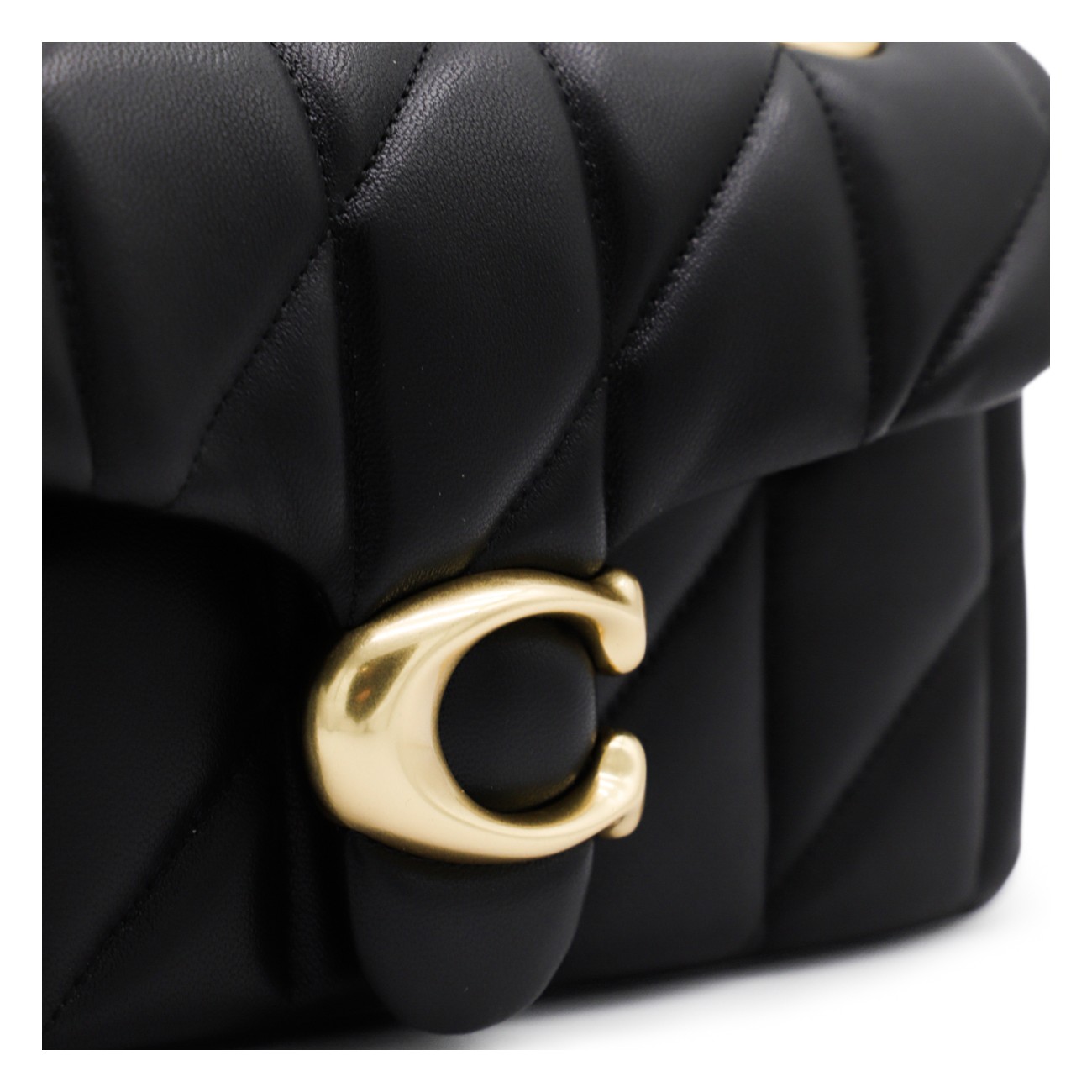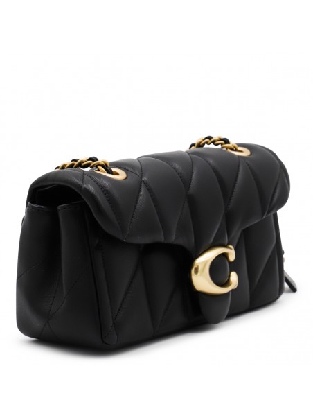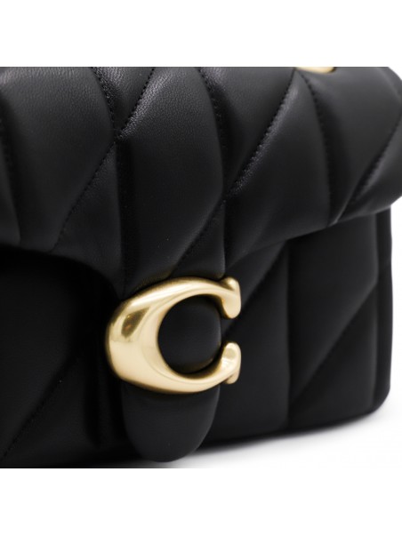 Black leather Quilted Tabby shoulder bag 20 from Coach featuring frontal button fastening, strap, single compartment and gold tone hardware.