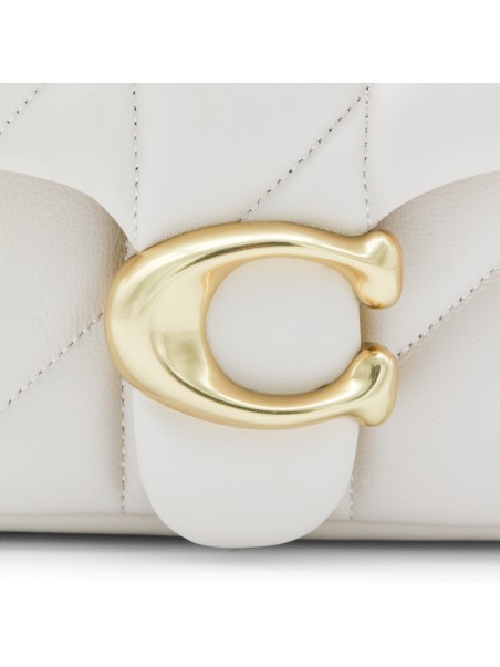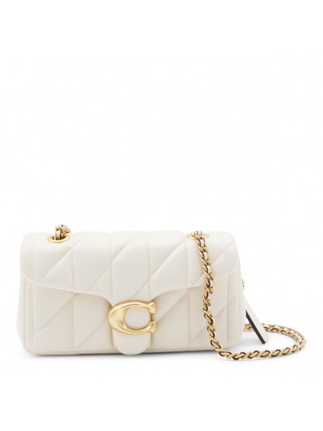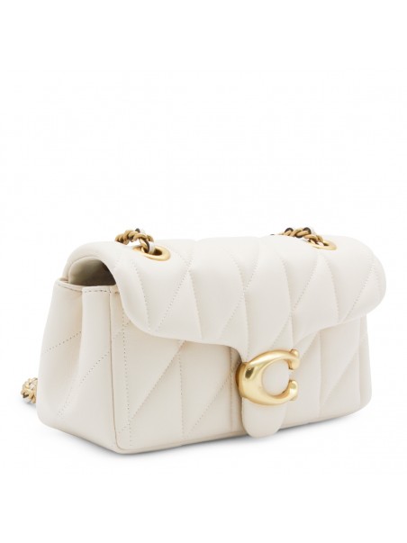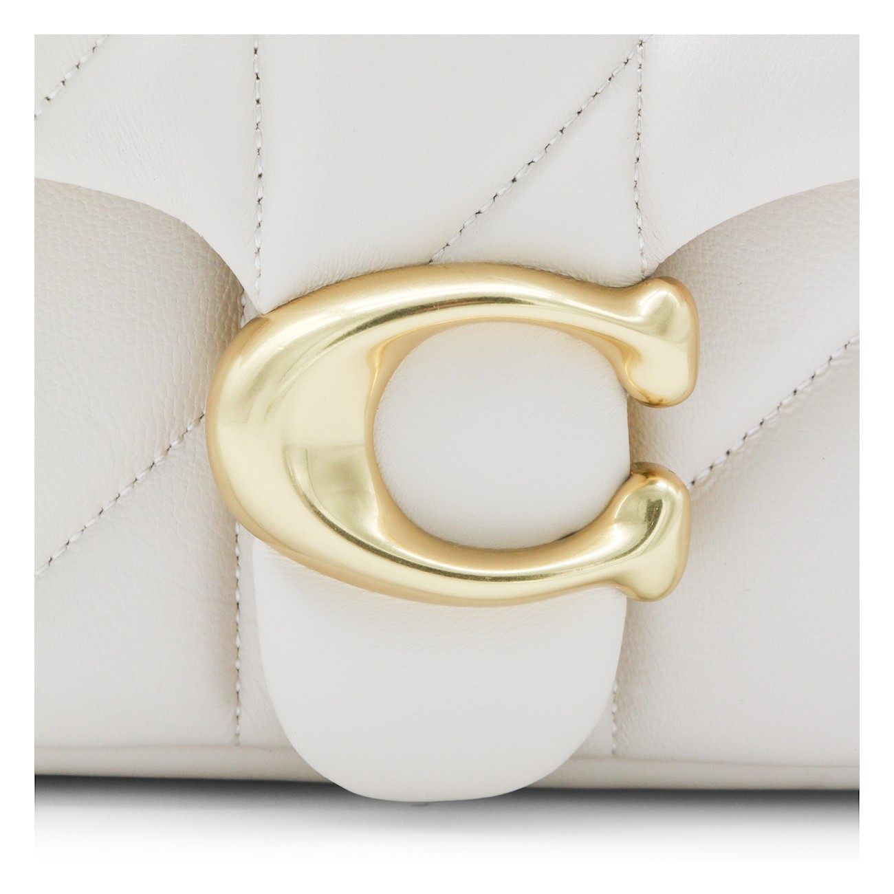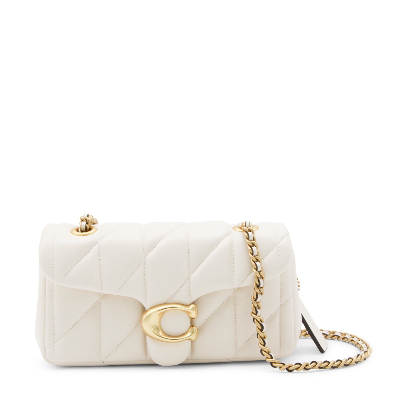 Chalk leather Quilted Tabby shoulder bag 20 from Coach featuring frontal fastening, chain, frontal logo and gold tone hardware.