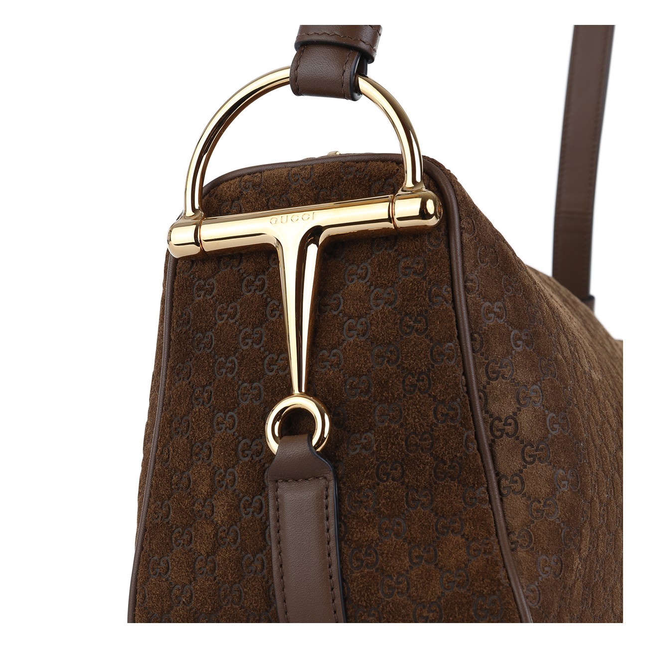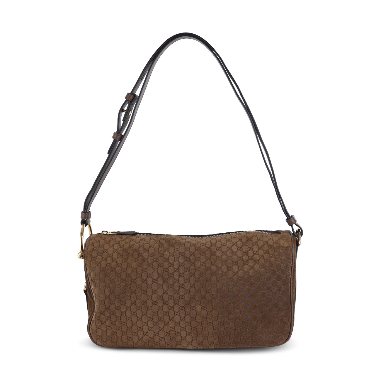 Brown leather mini bag from Gucci featuring adjustable strap, zip fastening, main compartment and gold tone hardware.