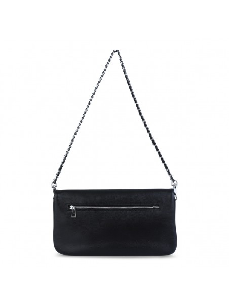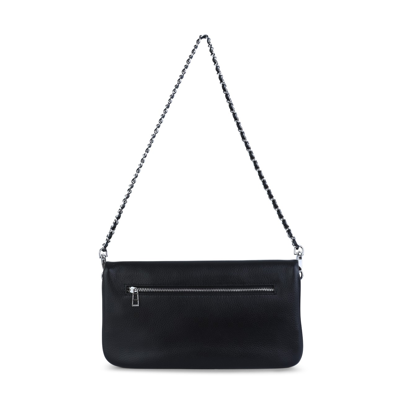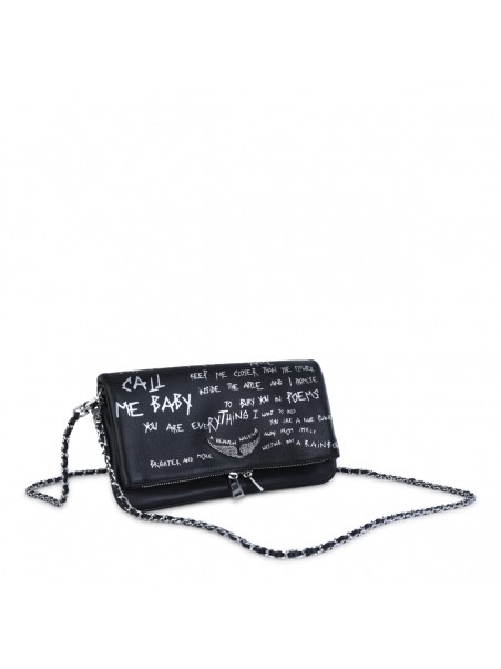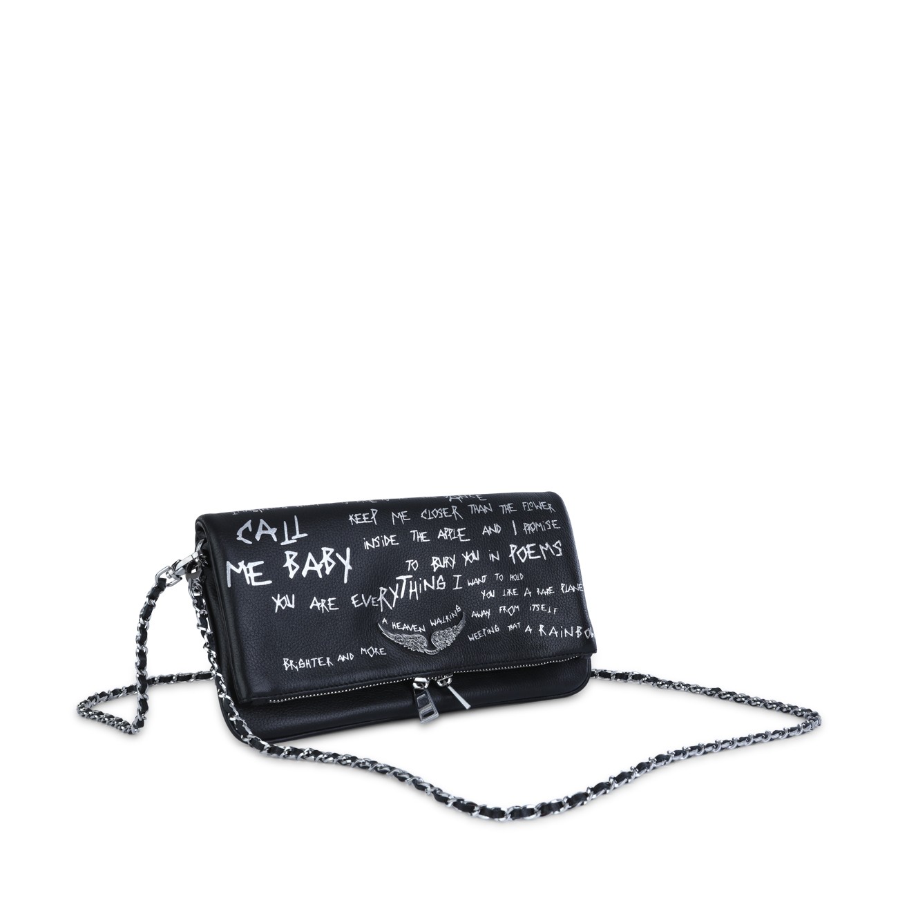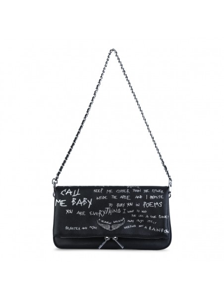 Black Rock Graffiti leather shoulder bag from Zadig & Voltaire featuring chain-link strap, silver tone hardware, frontal logo plaque, zip fastening, all over stamp and main compartment.