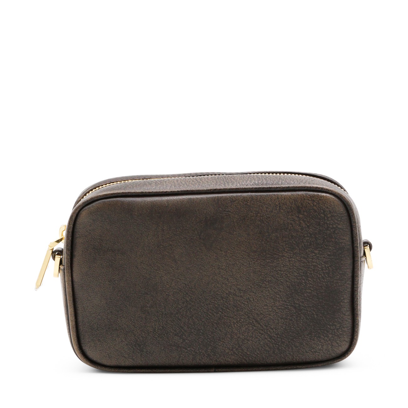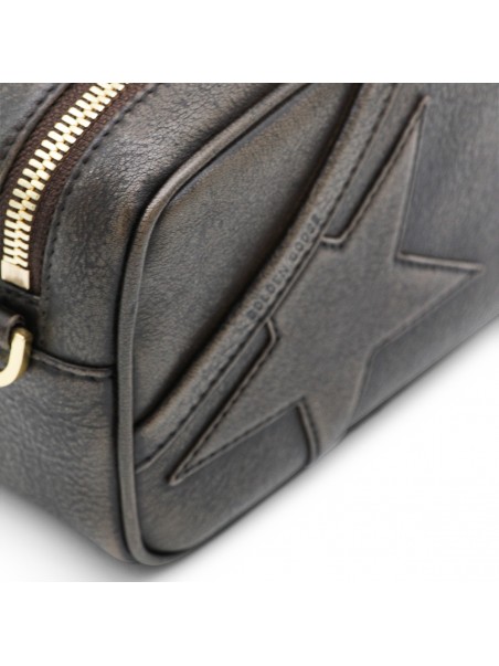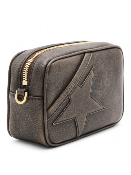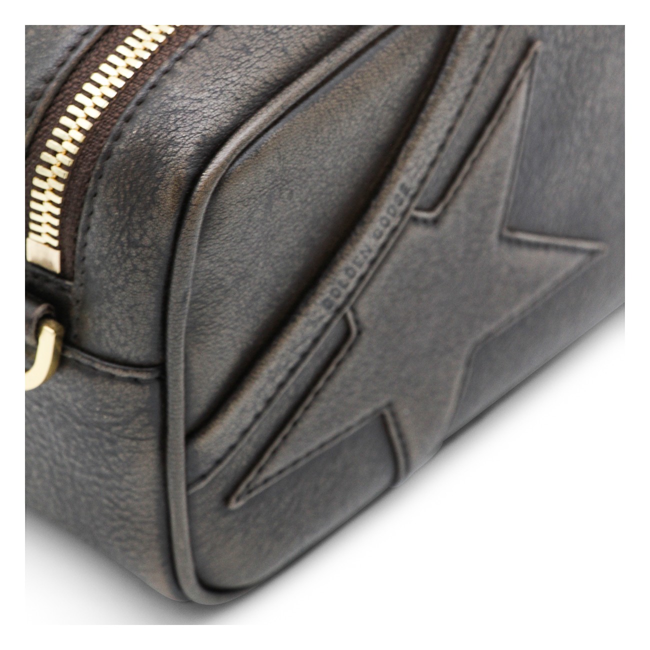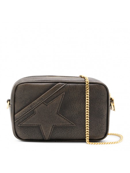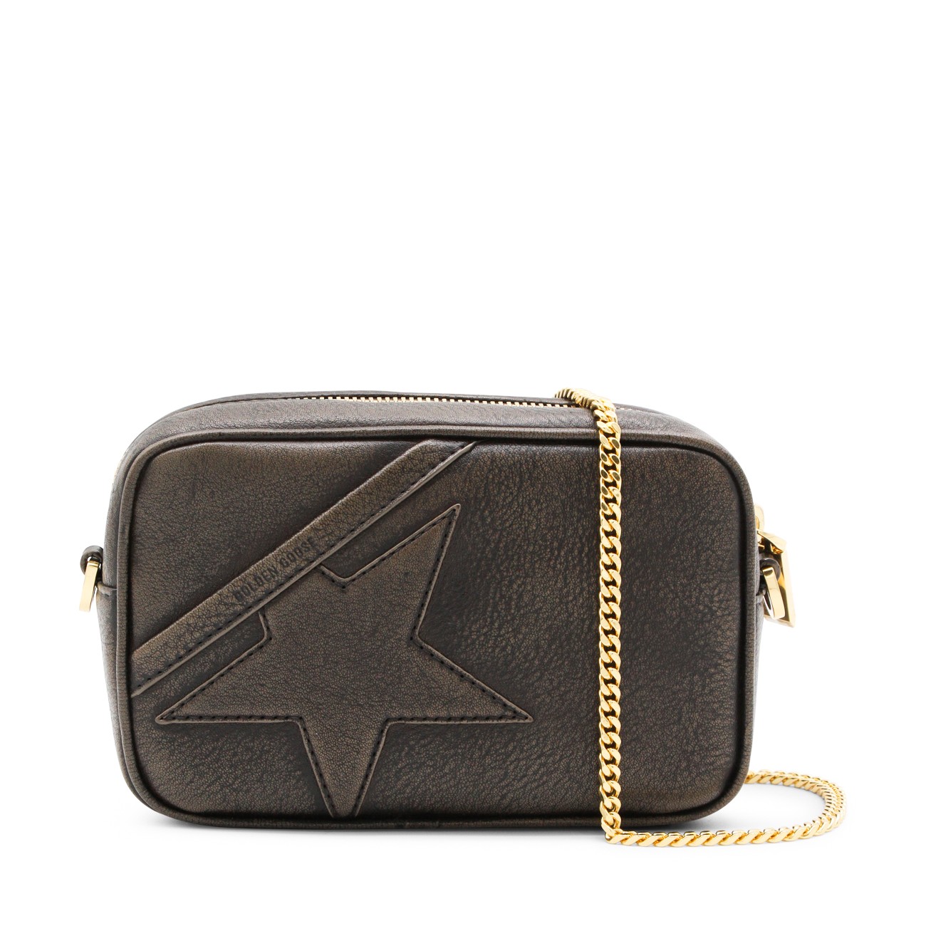 Dark brown leather crossbody bag from Golden Goose featuring removable chain, zip fastening, main compartment, frontal star patch and gold tone hardware.