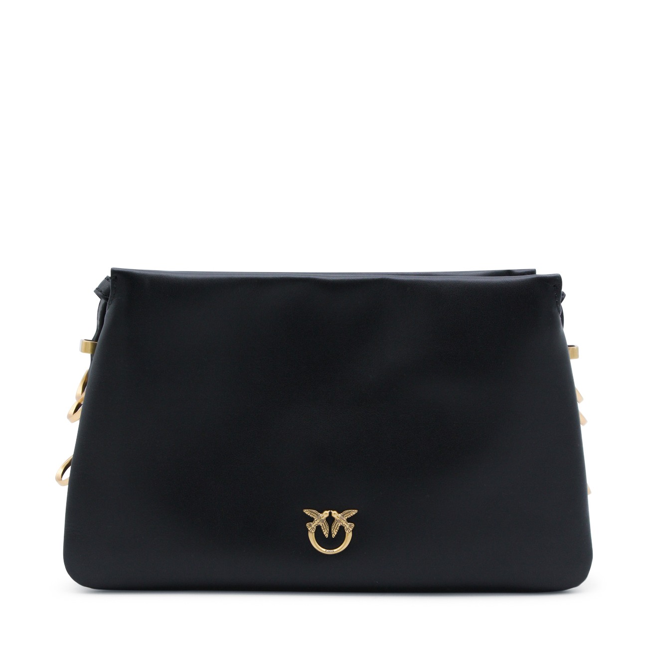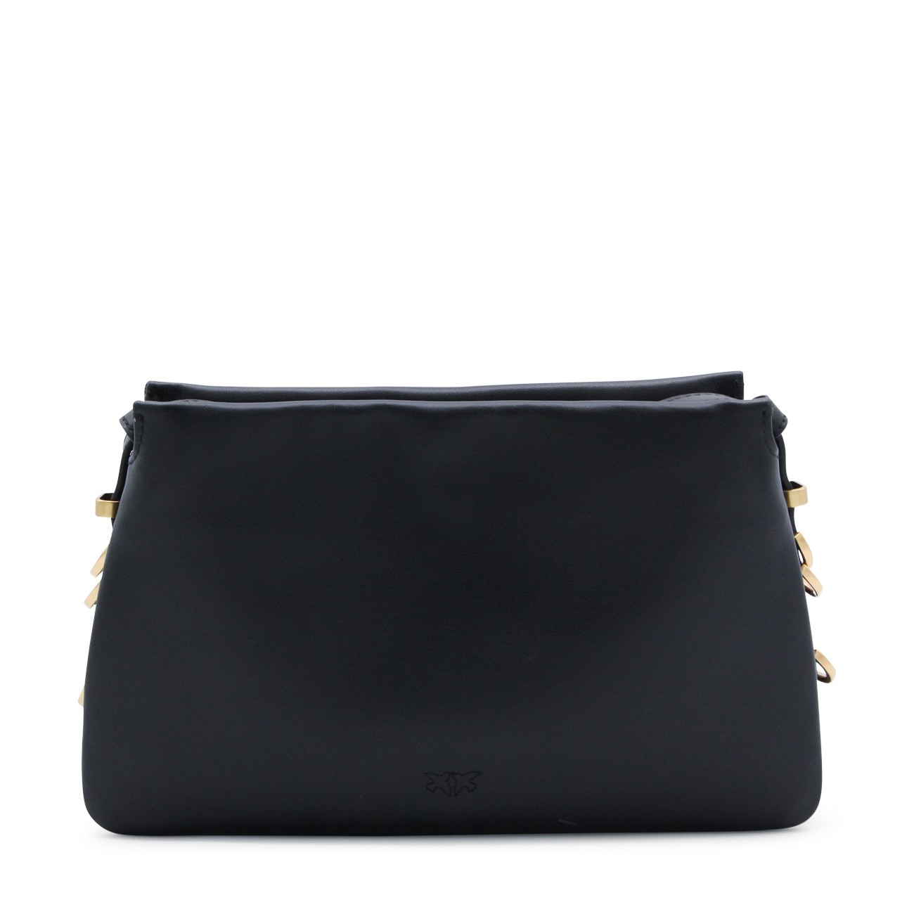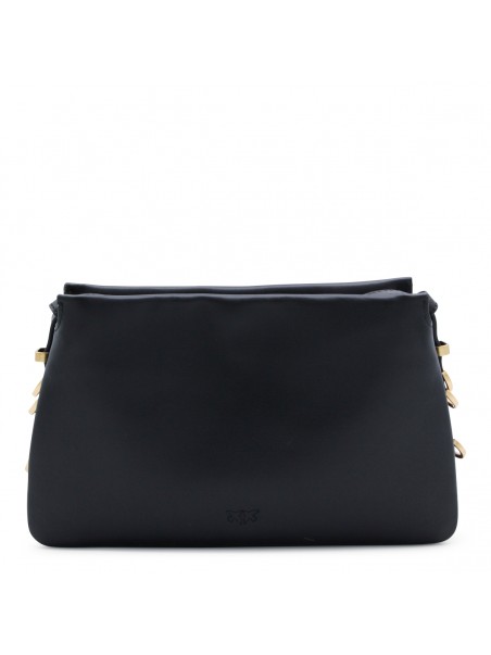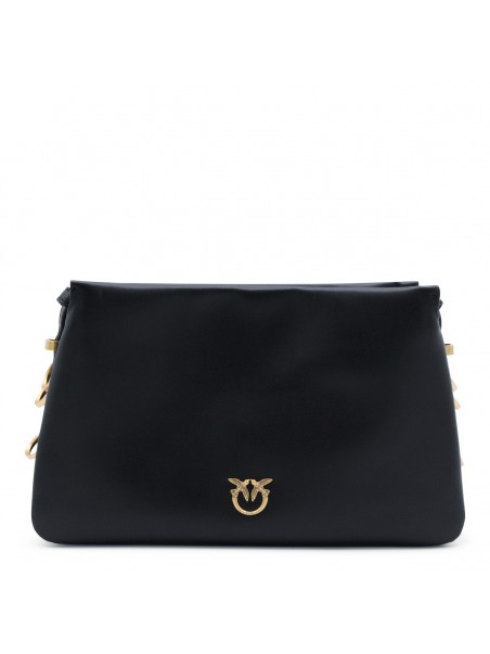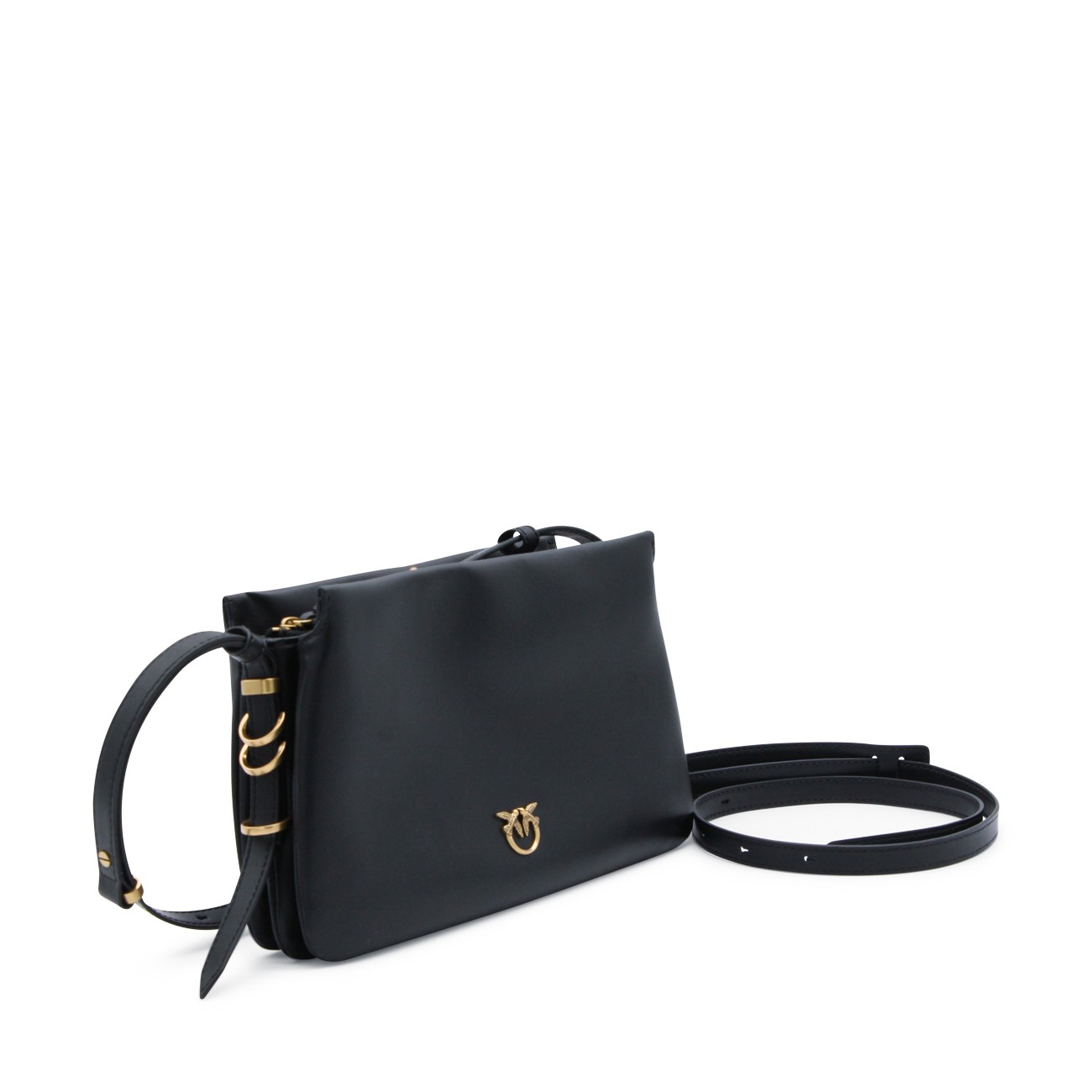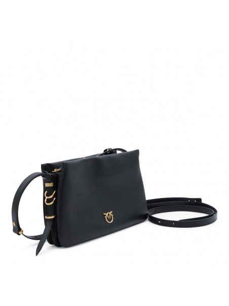 Black leather triplet mini crossbody bag from Pinko featuring zip fastening, adjustable and removable strap, main compartment and gold tone logo hardware.