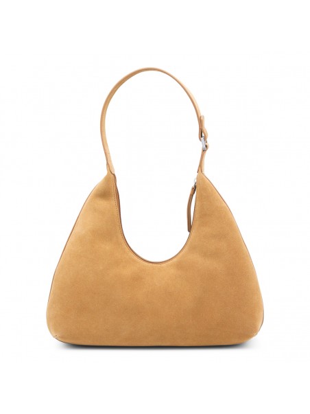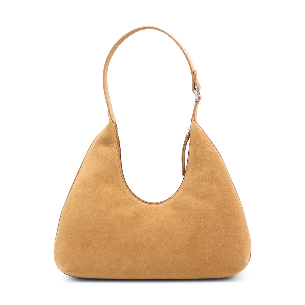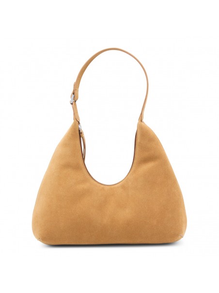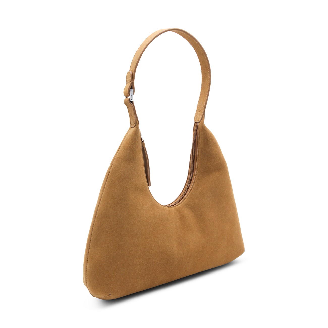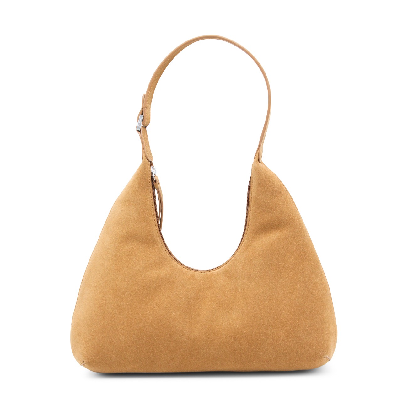 Amber suede leather shoulder bag from By Far featuring zip fastening, silver tone logo hardware, shoulder strap and main compartment.