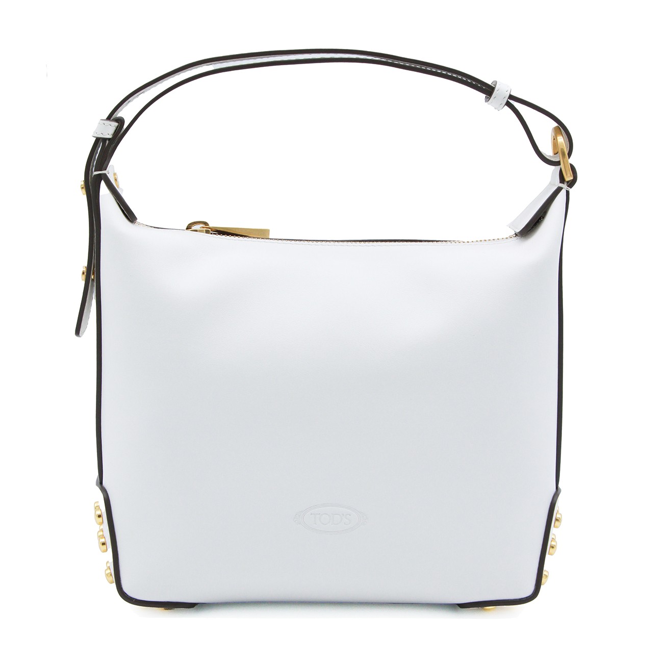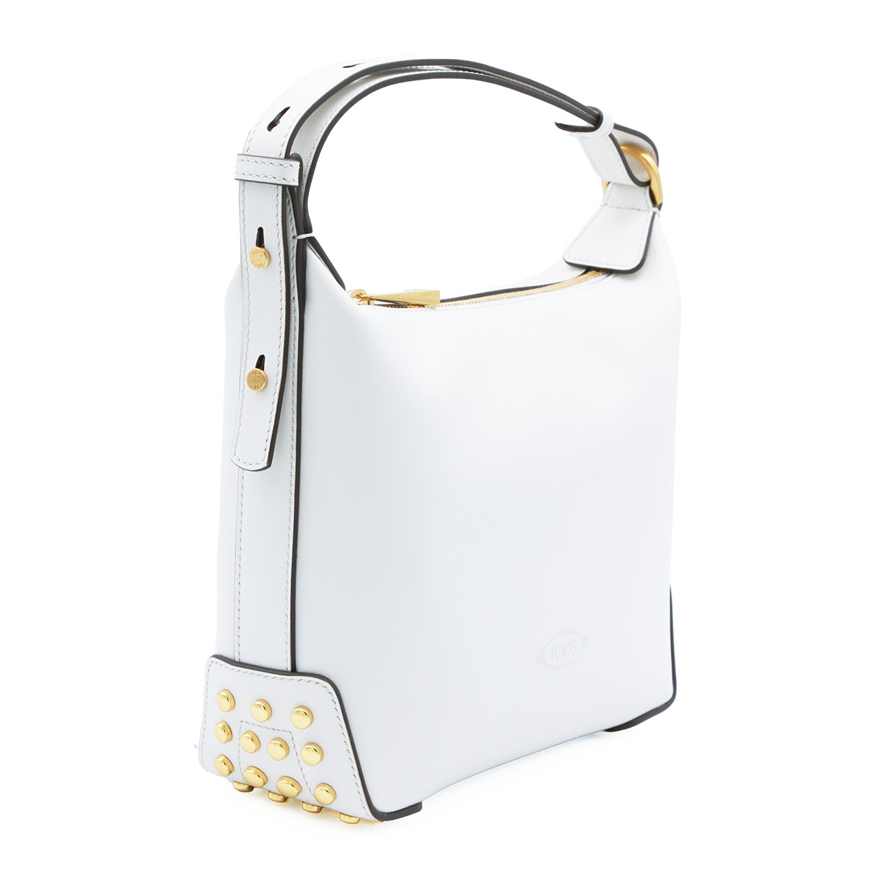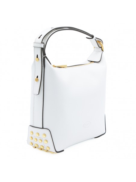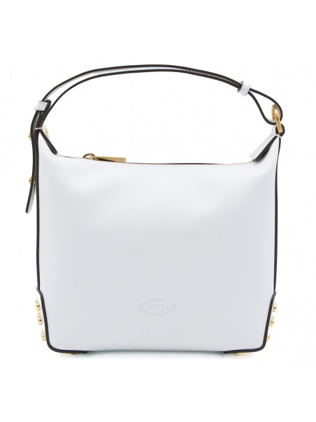 White leather shoulder bag from Tod's featuring main compartment with zip fastening, gold tone hardware, adjustable shoulder strap and logo details.